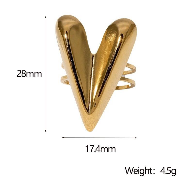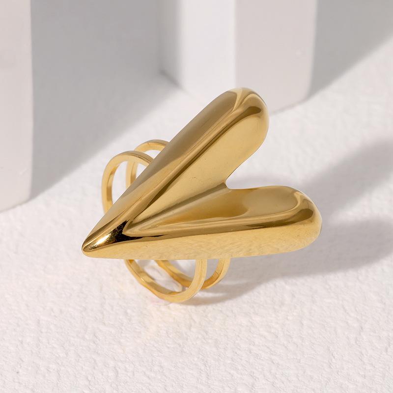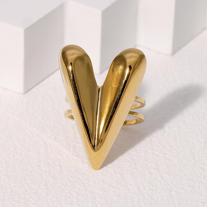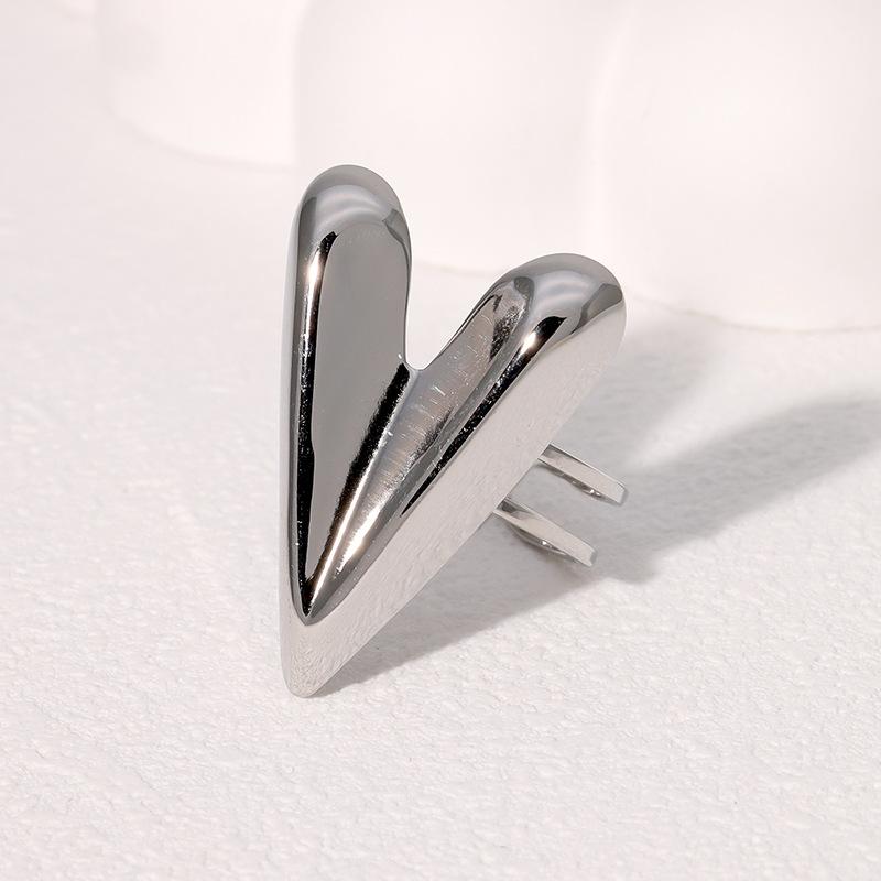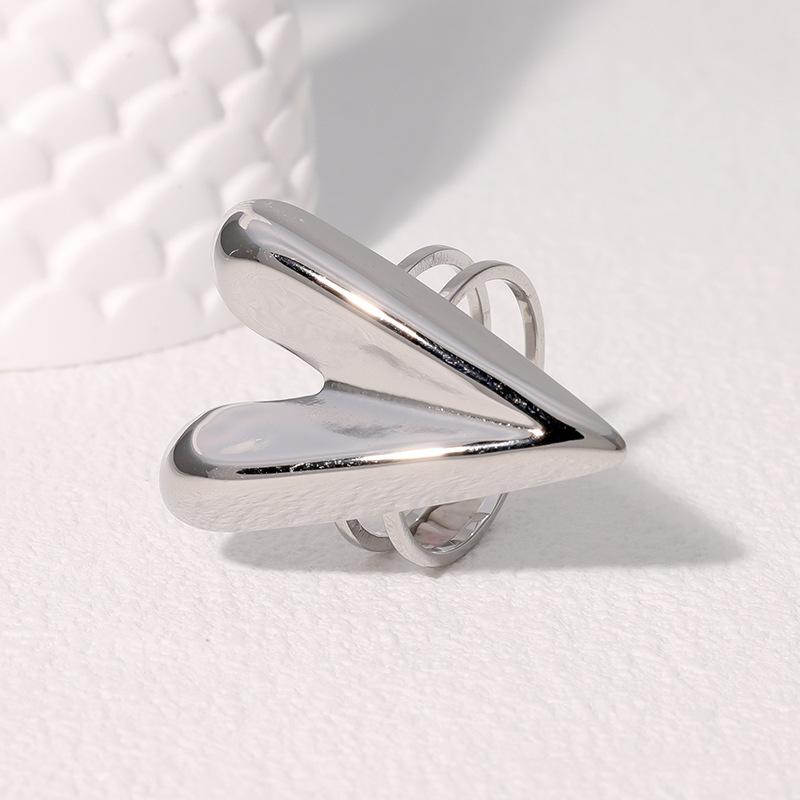 Anillo abierto de acero inoxidable francés exagerado con forma de corazón de amor de alto nivel, estilo simple y frío, transfronterizo entre Europa y Estados Unidos.