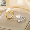 Anillo de diamantes y circonita estilo coreano para mujer, diseño de nicho, anillo de perla con apertura ajustable, joyería ligera de lujo.