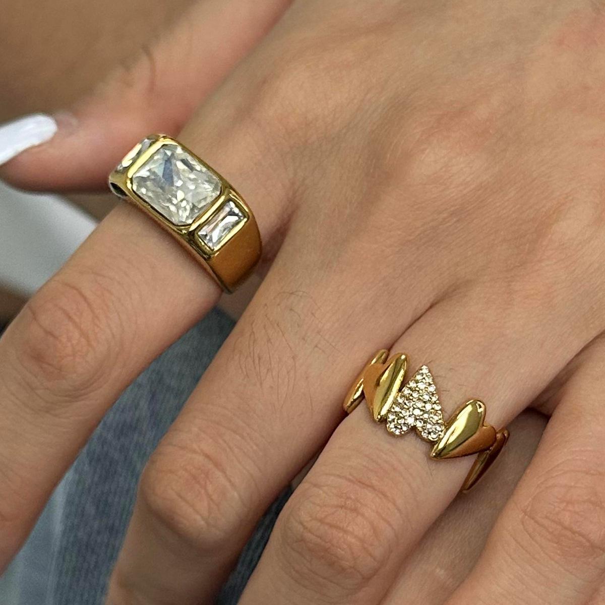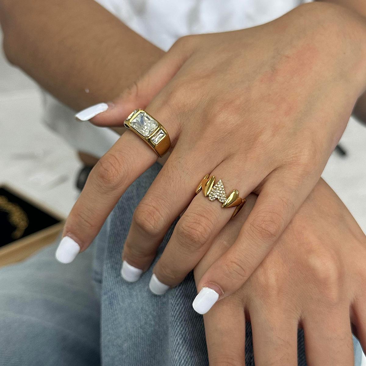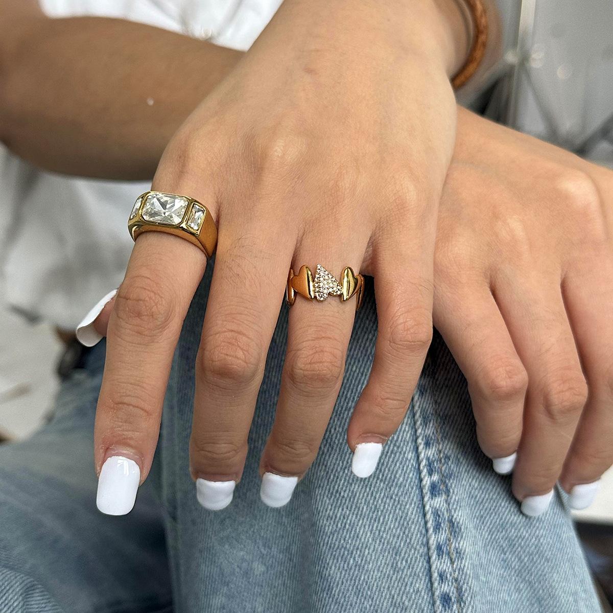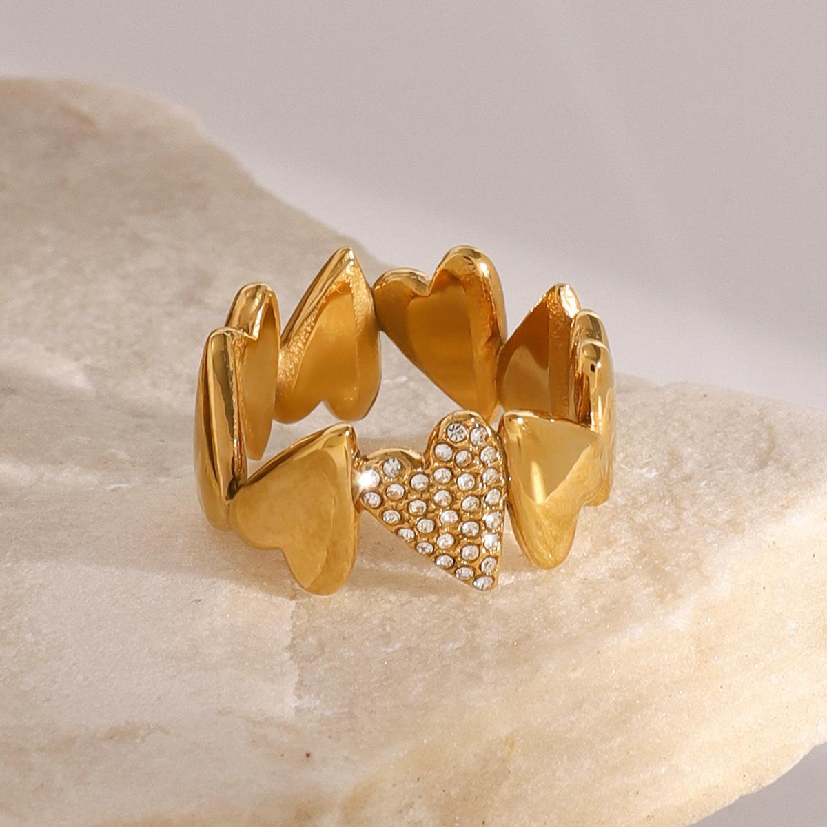 Jieding Europeo y Americano Acero Inoxidable Oro 18k Zirconia Anillo de Amor Sentido del Diseño Sentido Avanzado Anillo Joyería de Lujo Ligero Transfronterizo