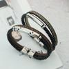 | Pulsera de cuero tejida a mano con cuerda de cuero, joyería popular transfronteriza europea y americana, pulsera para hombre, joyería j al por mayor |