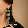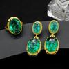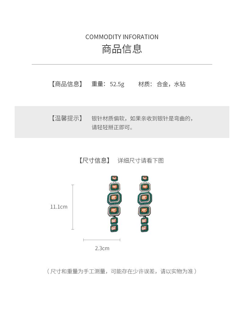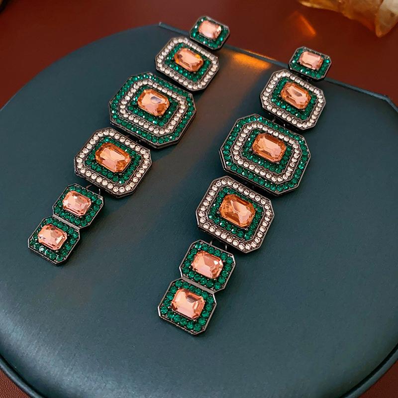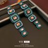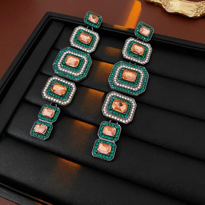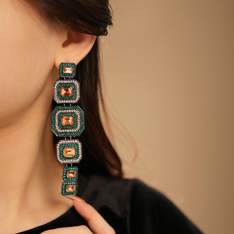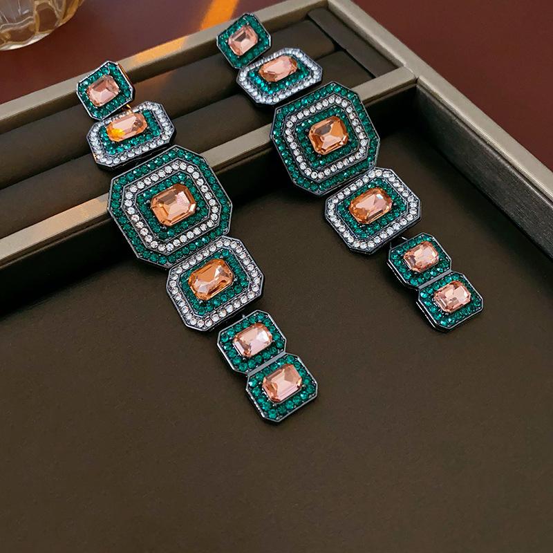 Aretes Medievales Vintage Aguja de Plata Diamante Verde Geométricos Aretes de Alta Gama Aretes de Diseño de Moda Europeo y Americano