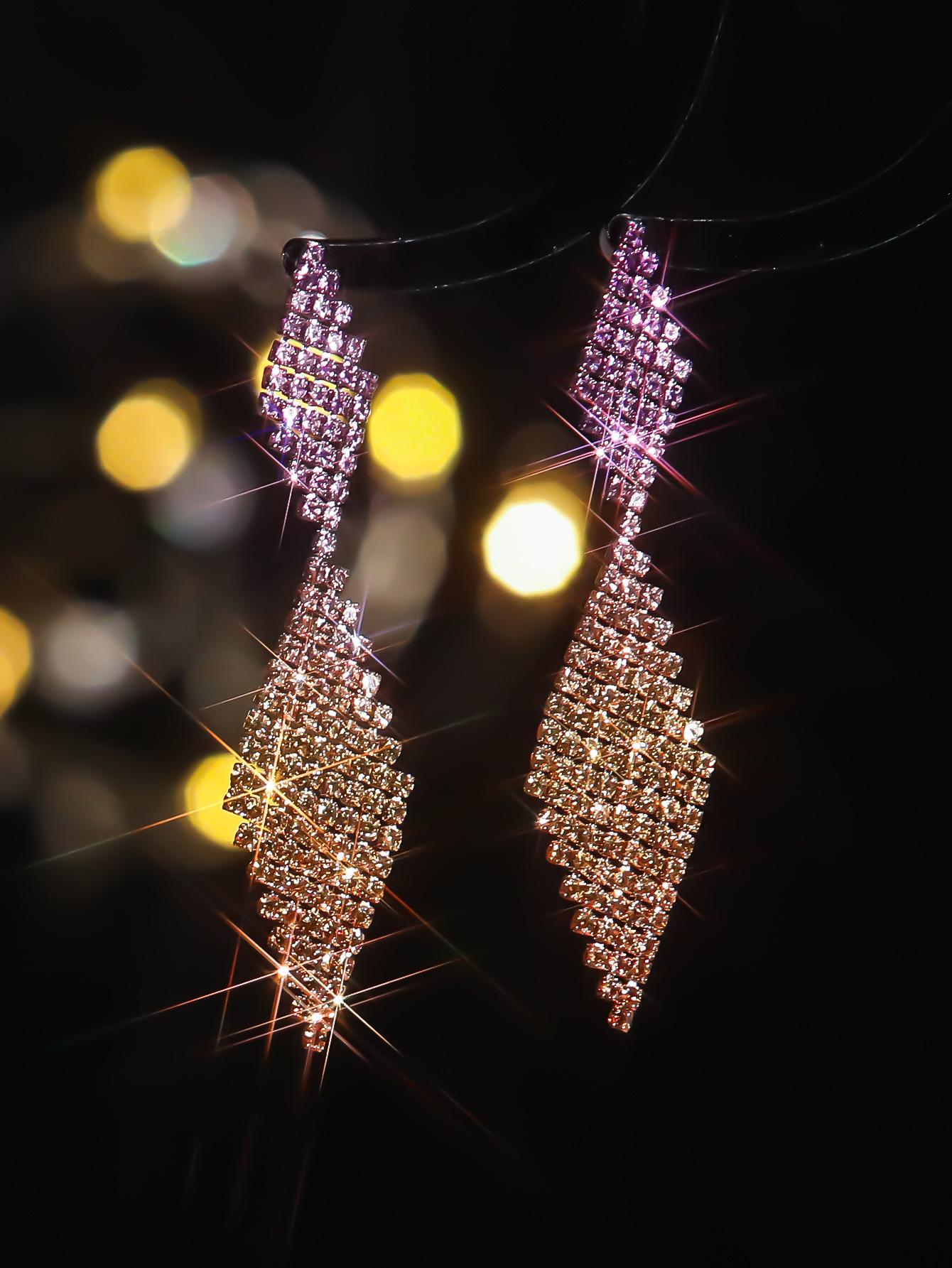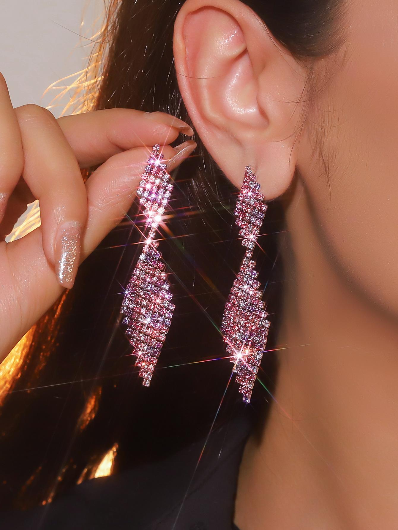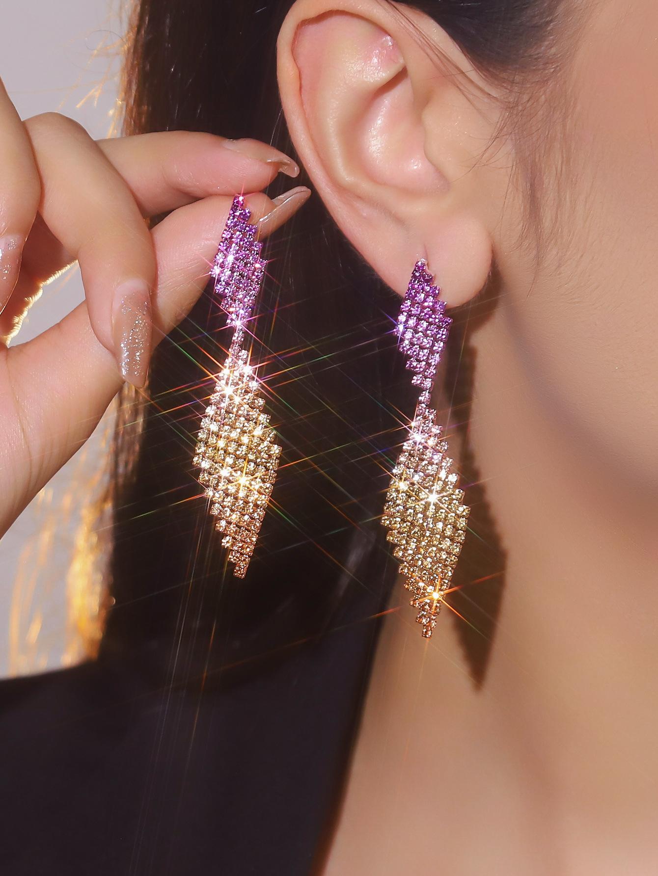 Compra Pendientes Largos de Moda Transfronteriza Europea y Americana de Color para Mujer con Diseño Geométrico de Diamantes, Pendientes de Botón, Joyería para la Oreja al por mayor en Joom.pro
