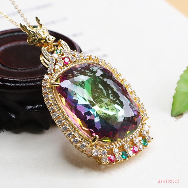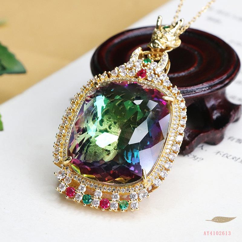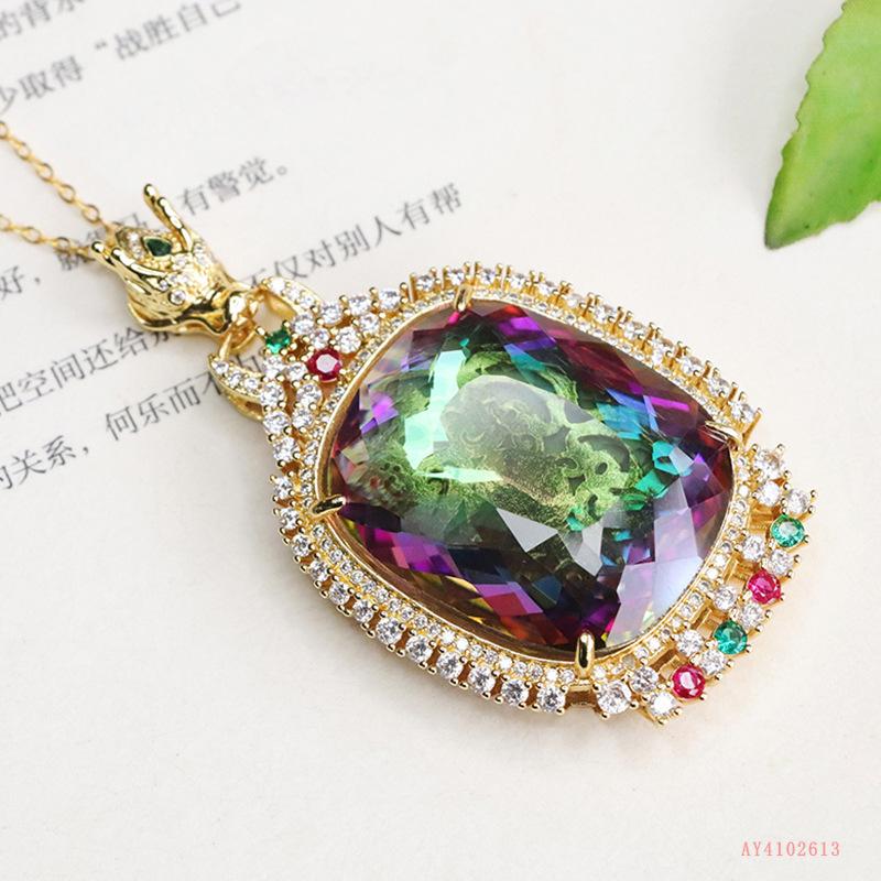 Collar con colgante de huevo de paloma con incrustaciones de grifo de cristal morado de Aiyu Guochao, venta al por mayor, generación AY4102613