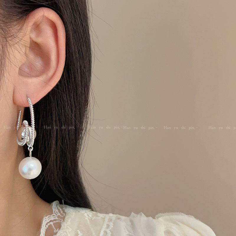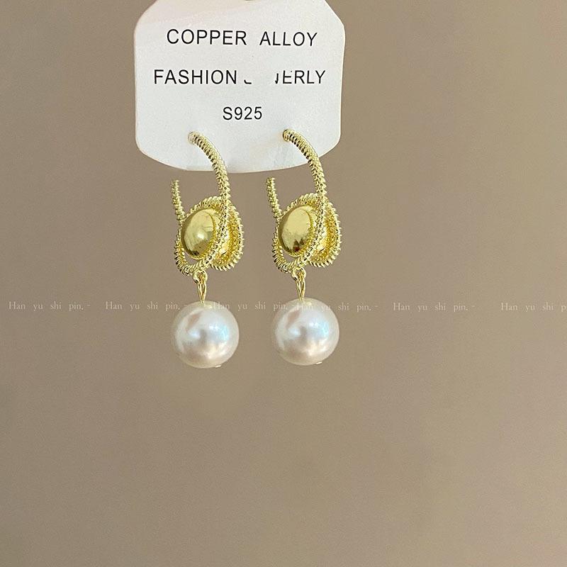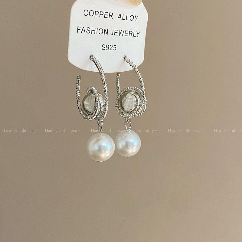 Otoño e Invierno Nuevos Pendientes Geométricos Elegantes Exagerados de Perla de Imitación Europeos y Americanos para Mujer Pendientes de Espiral Modernos y de Alta Gama