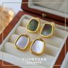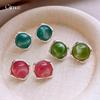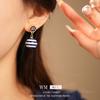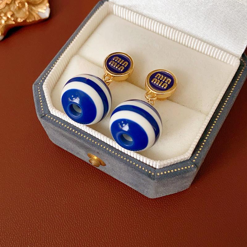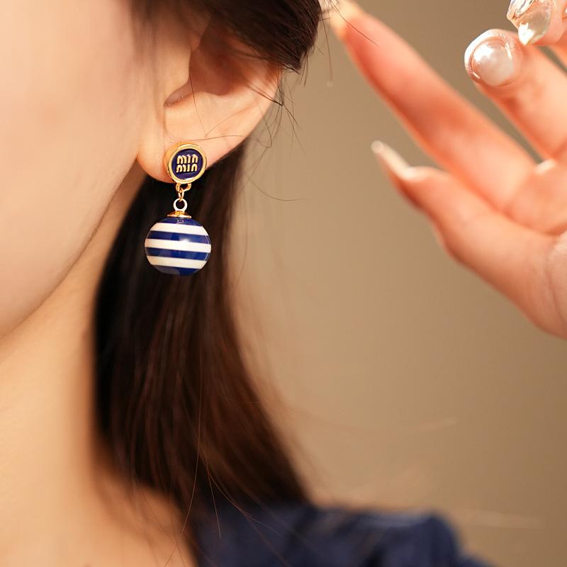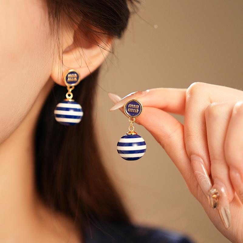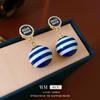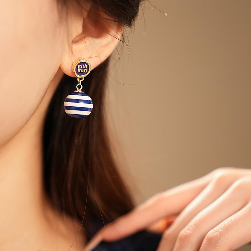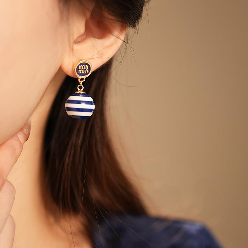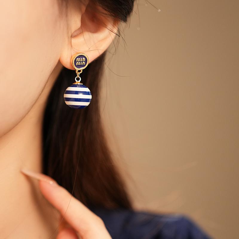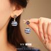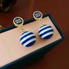 Pendientes geométricos con gotas de aceite azul y aguja plateada. Diseño con sentido del diseño. Pendientes creativos de nicho. Pendientes elegantes de alta gama al por mayor.