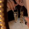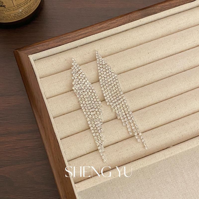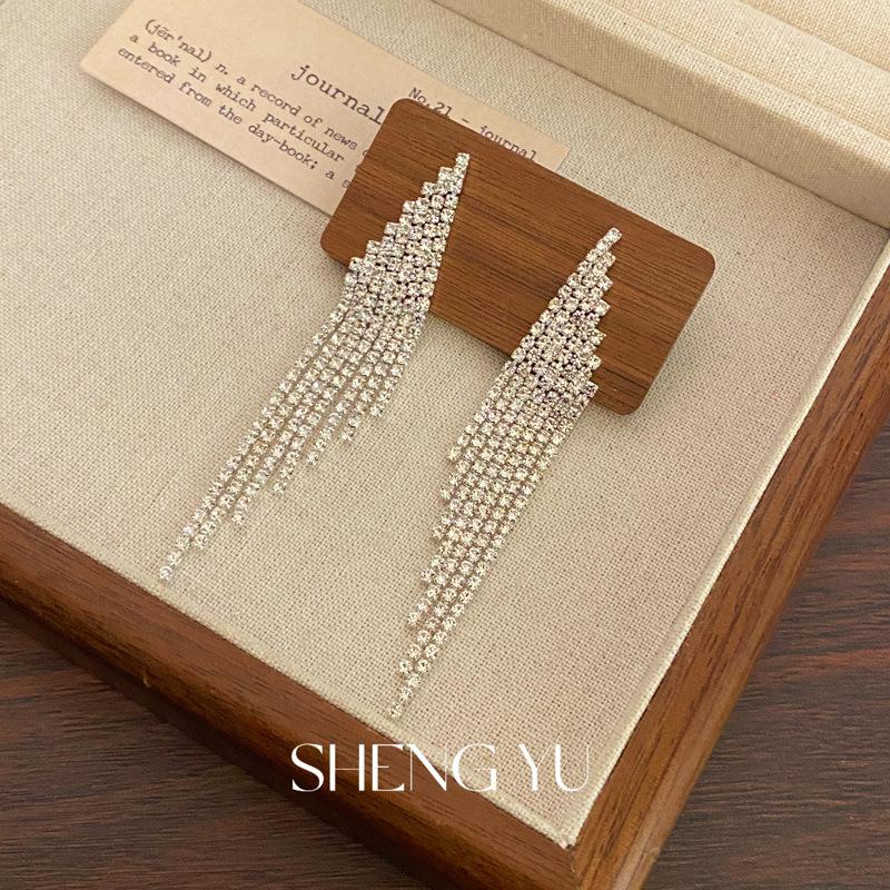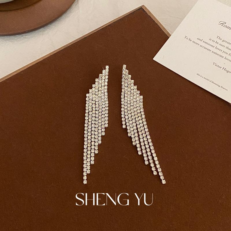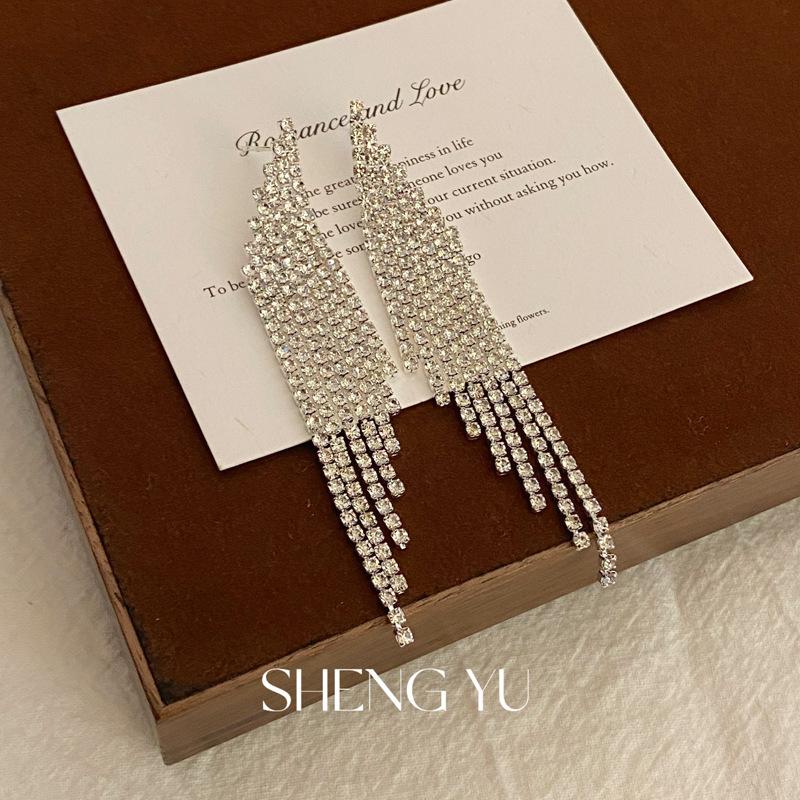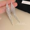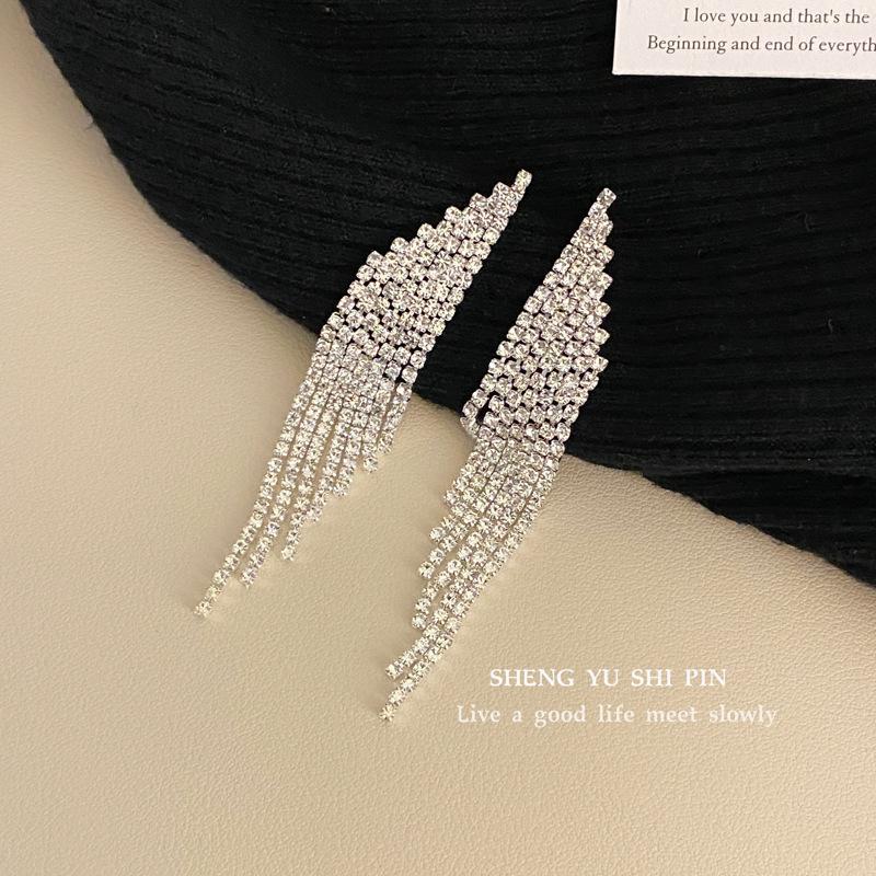 Nuevos aretes de borla superbrillantes de diamantes completos para mujer, diseño de nicho de lujo ligero, aretes exagerados de alta gama europeos y americanos, venta al por mayor de aretes