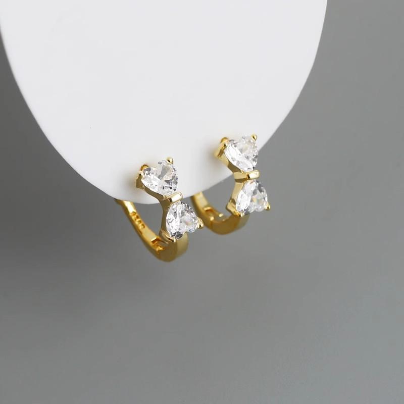 Bow zircon earrings (gold color), Bow zircon earrings (white gold)