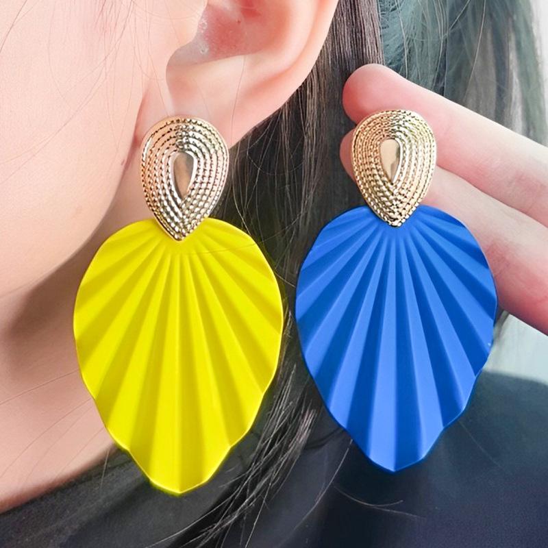 Pendientes europeos y americanos, pendientes de metal con hojas de colores personalizados, pendientes con diseño exagerado y sentido de los pendientes, joyería para las orejas para mujer.