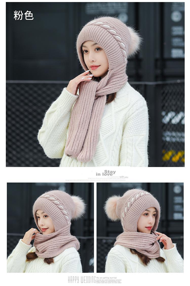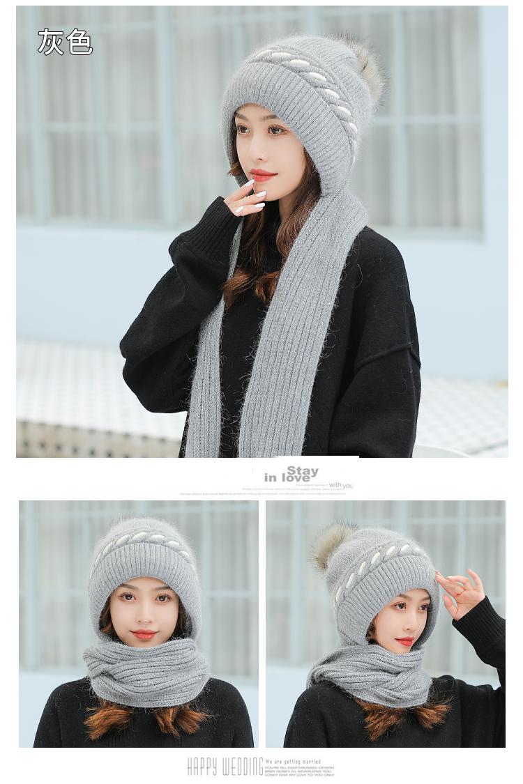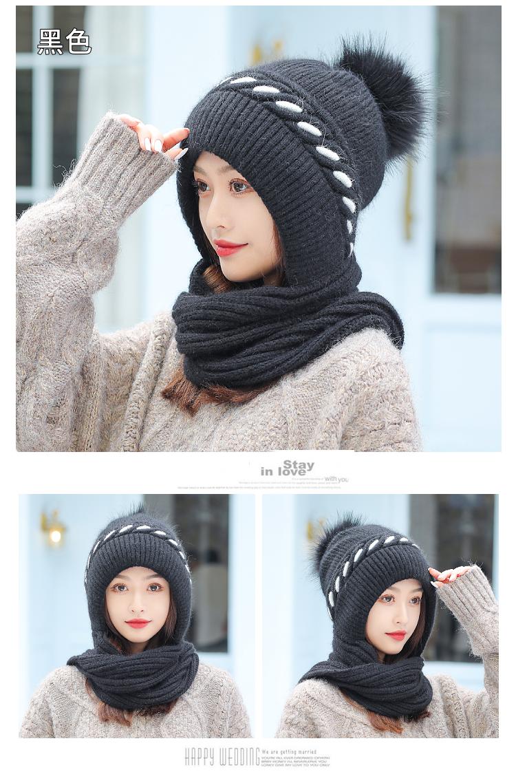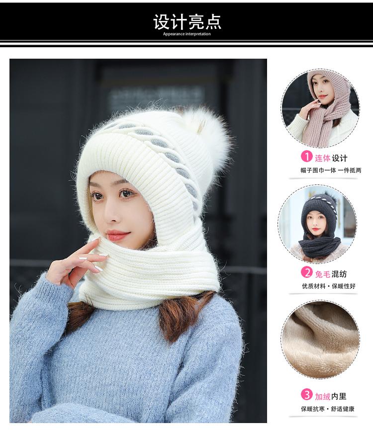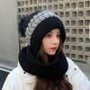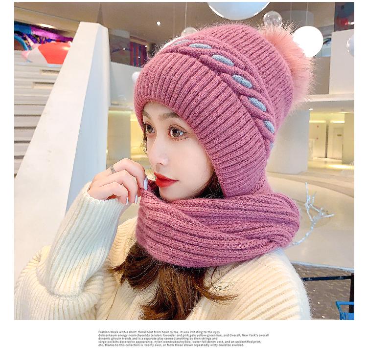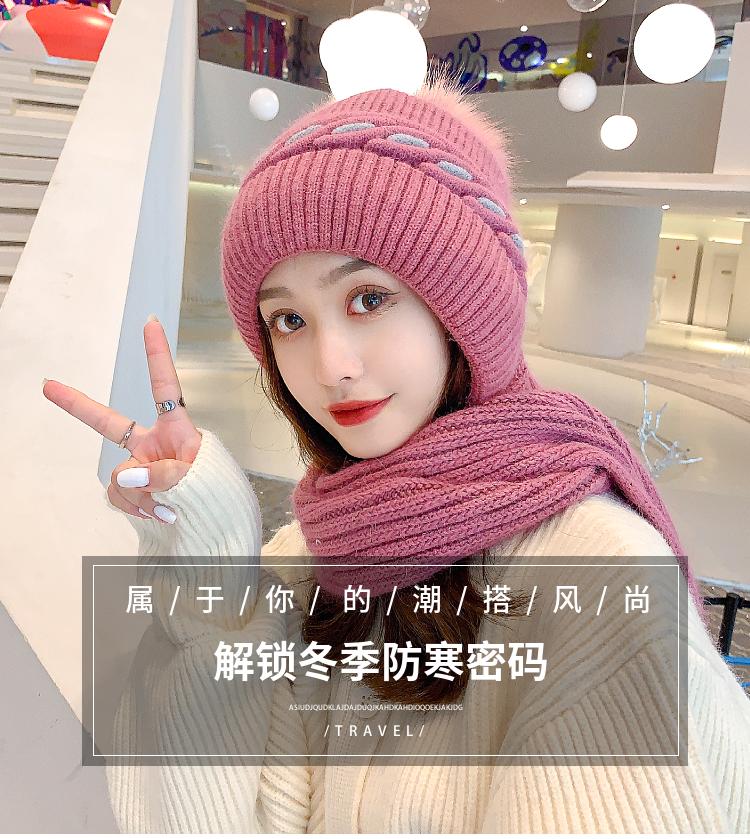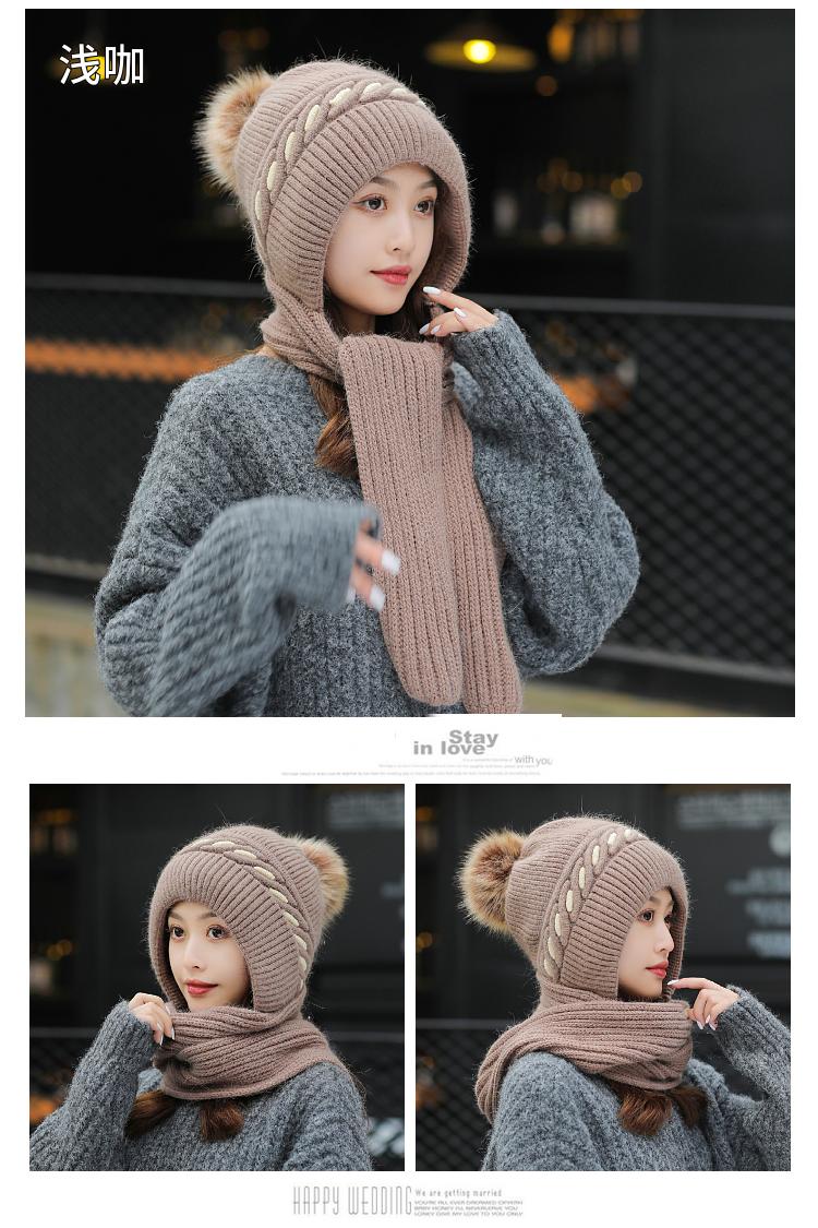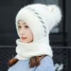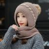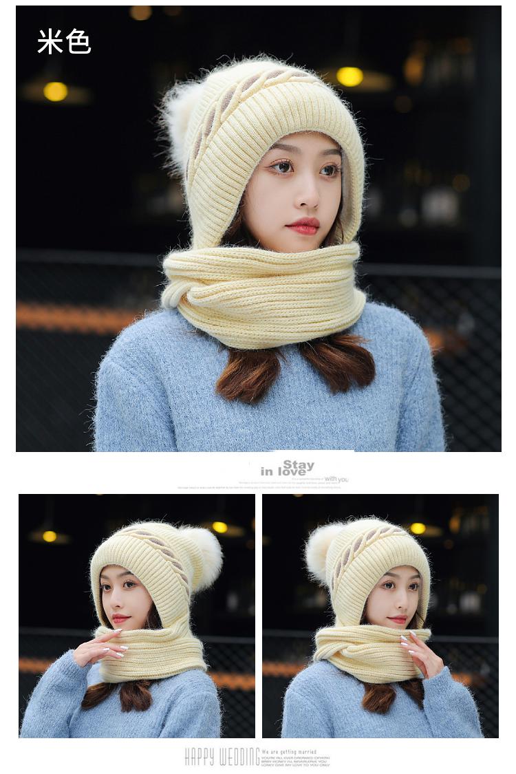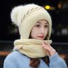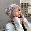 Gorro de terciopelo para mujer, para otoño e invierno, con protección para los oídos, resistente al frío, para jóvenes, combinable, cálido, a la moda, informal, con bufanda, de lana de una pieza.