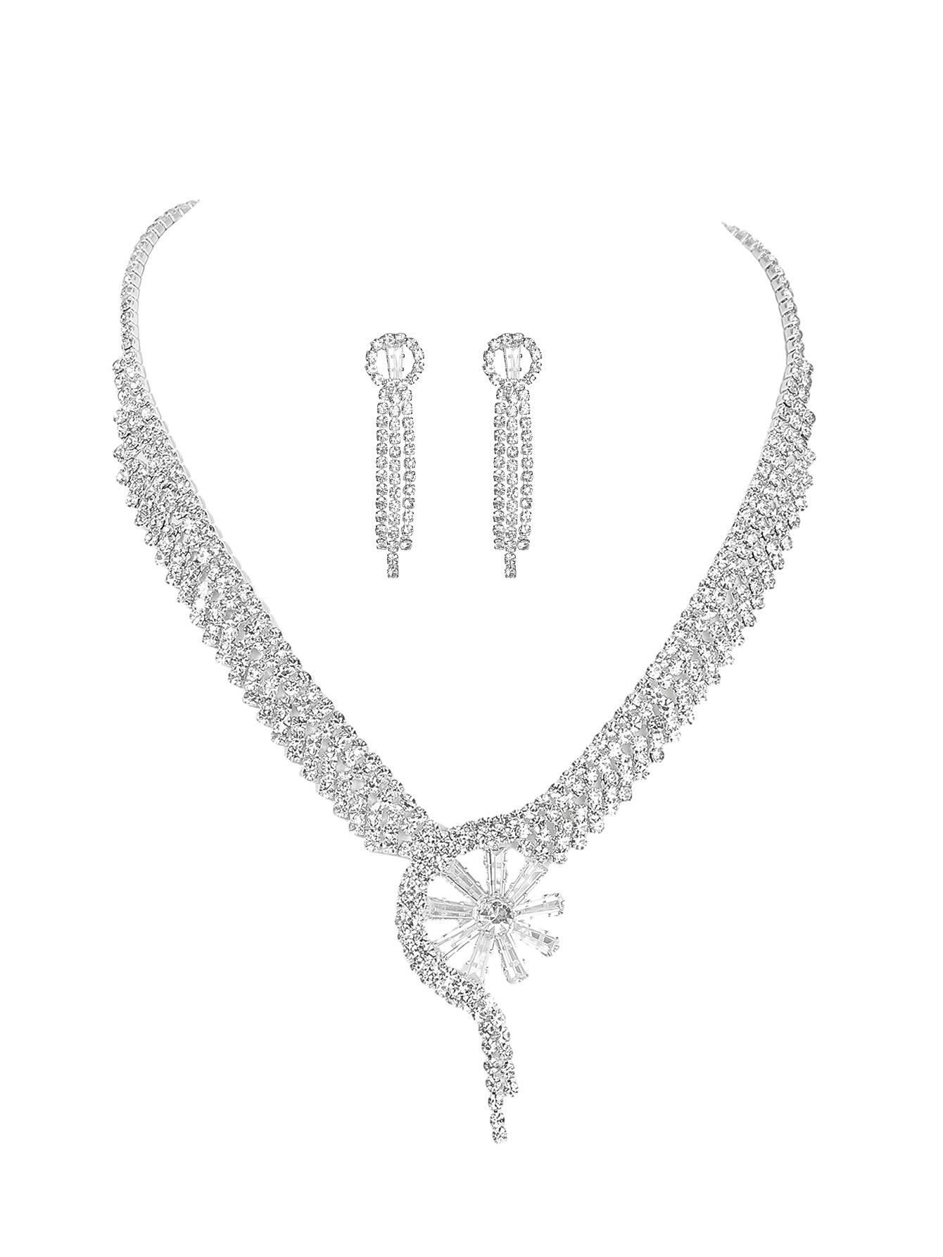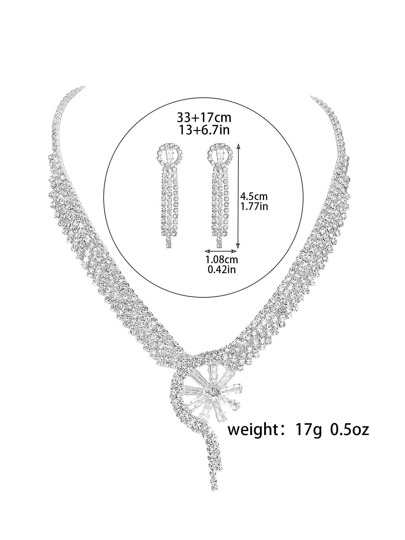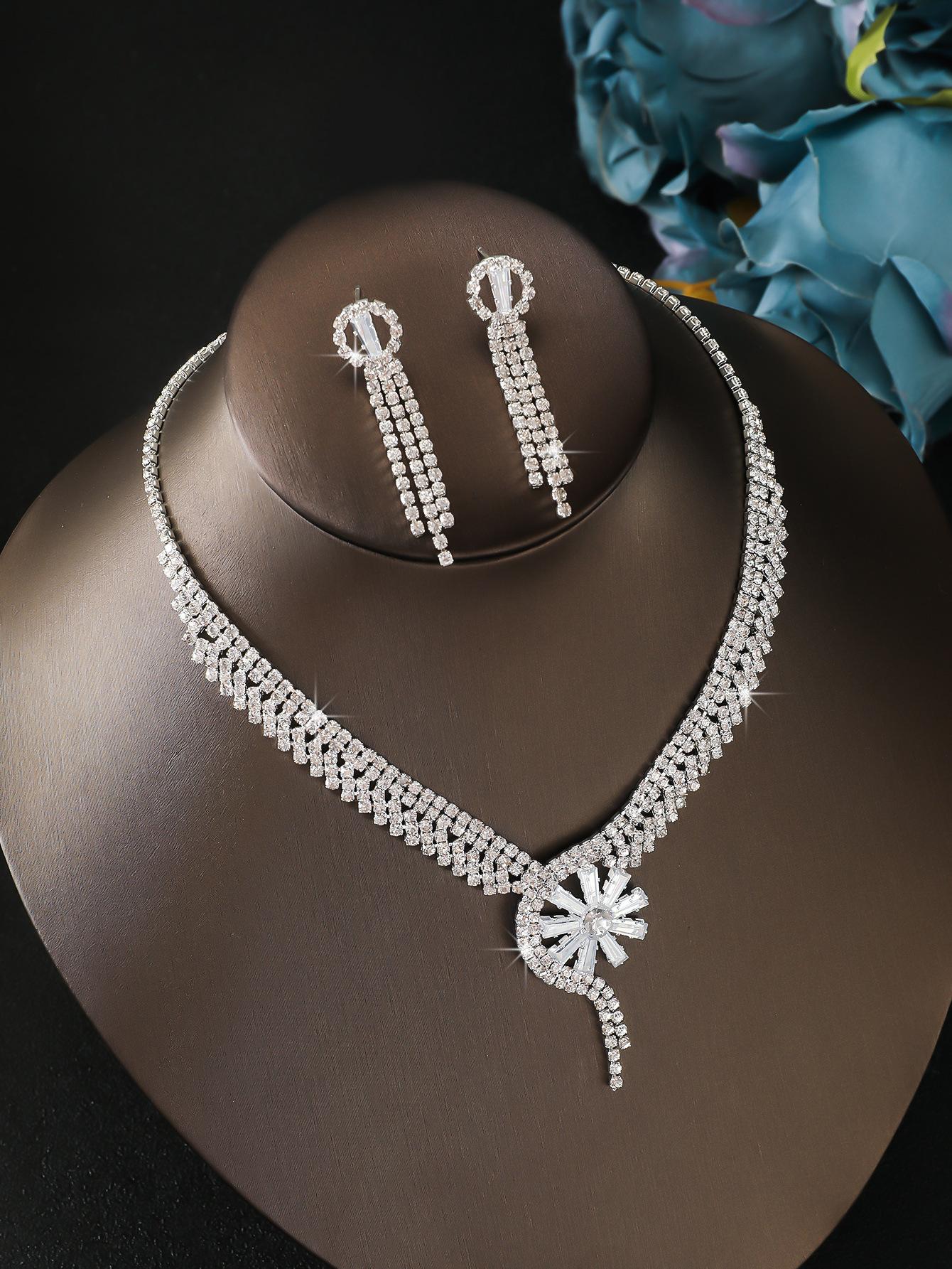 Collar y Aretes de Diamantes Flash de Moda Transfronteriza Europea y Americana Juego de Dos Piezas Collar de Alta Gama Joyería Nupcial Accesorios de Boda
