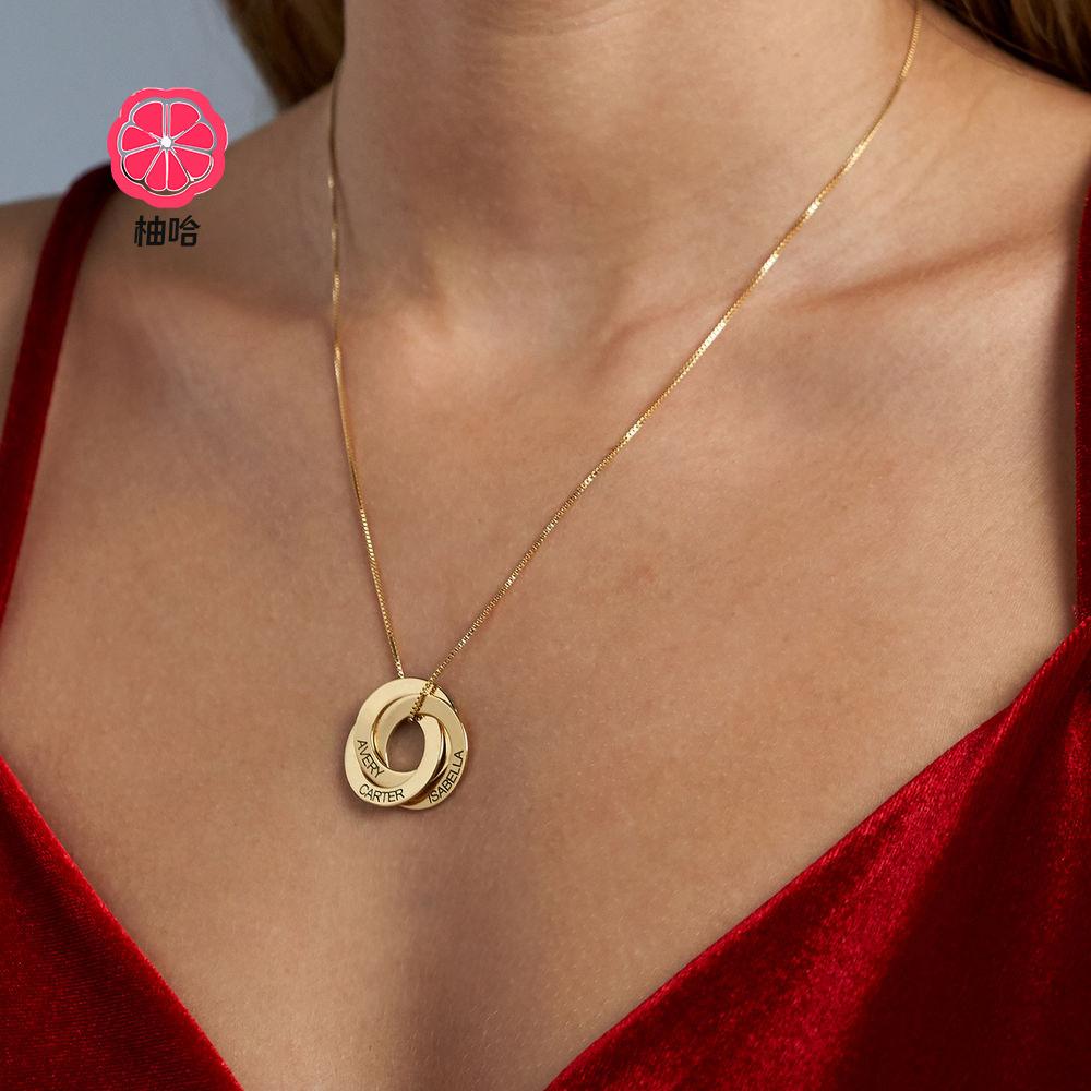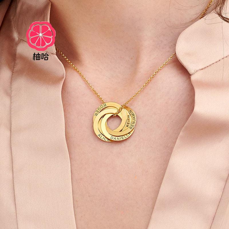 【Nombre del producto】: Collar de anillo entrelazado grabado
