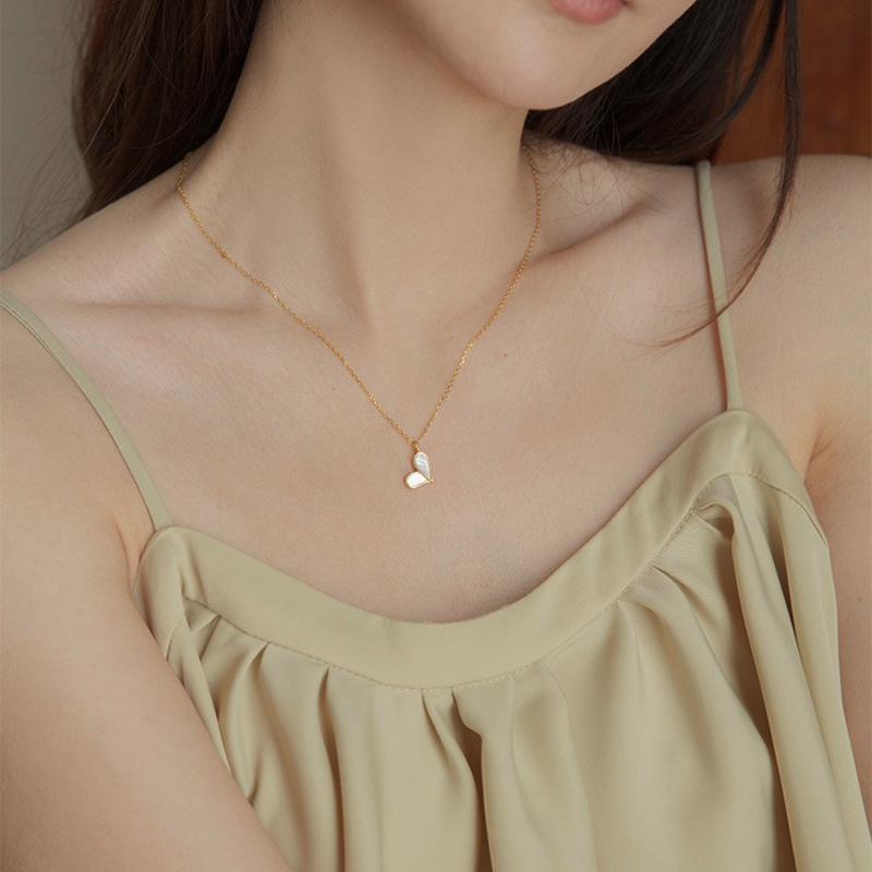 Collar de fritillaria de amor simple de estilo japonés y coreano para mujer, con personalidad de nicho, colgante dulce en forma de corazón, cadena de clavícula de acero inoxidable a la moda.