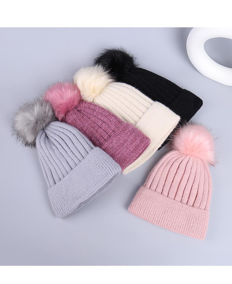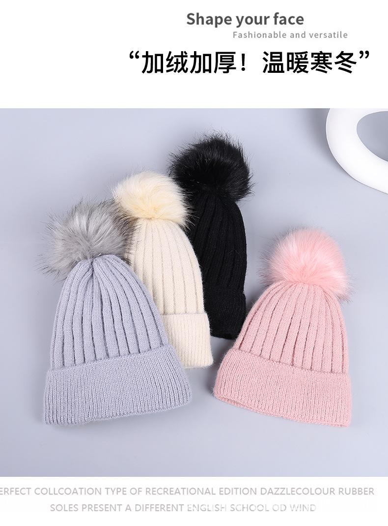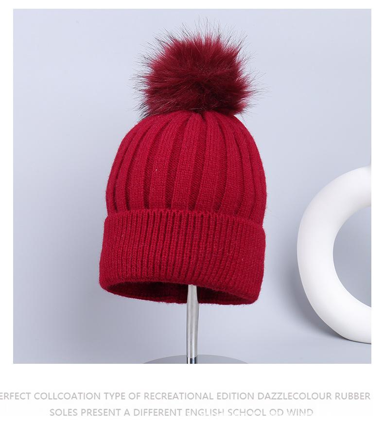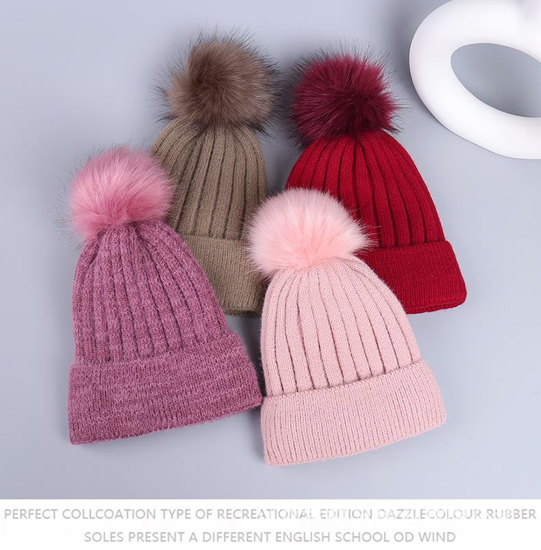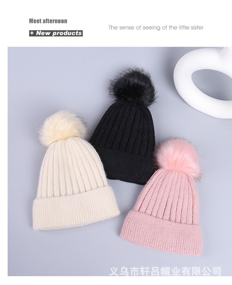 Nuevo Gorro de Lana Simple de Color Sólido para Hombre y Mujer Otoño e Invierno con Forro Polar Engrosado Clásico con Pompon de Pelo Gorro Caliente