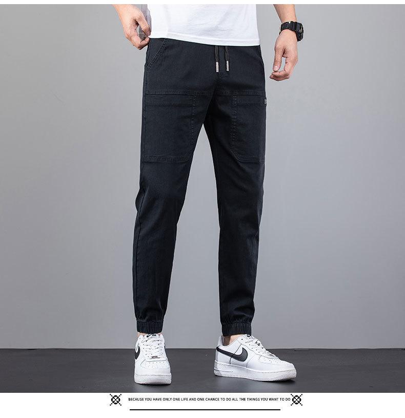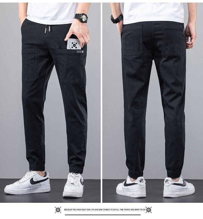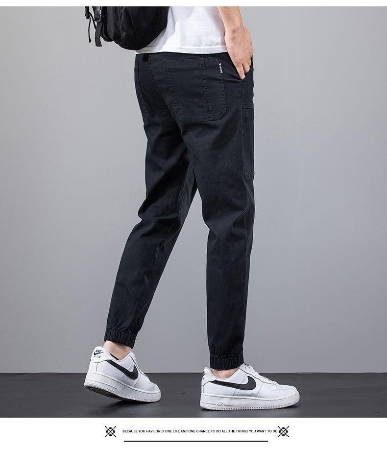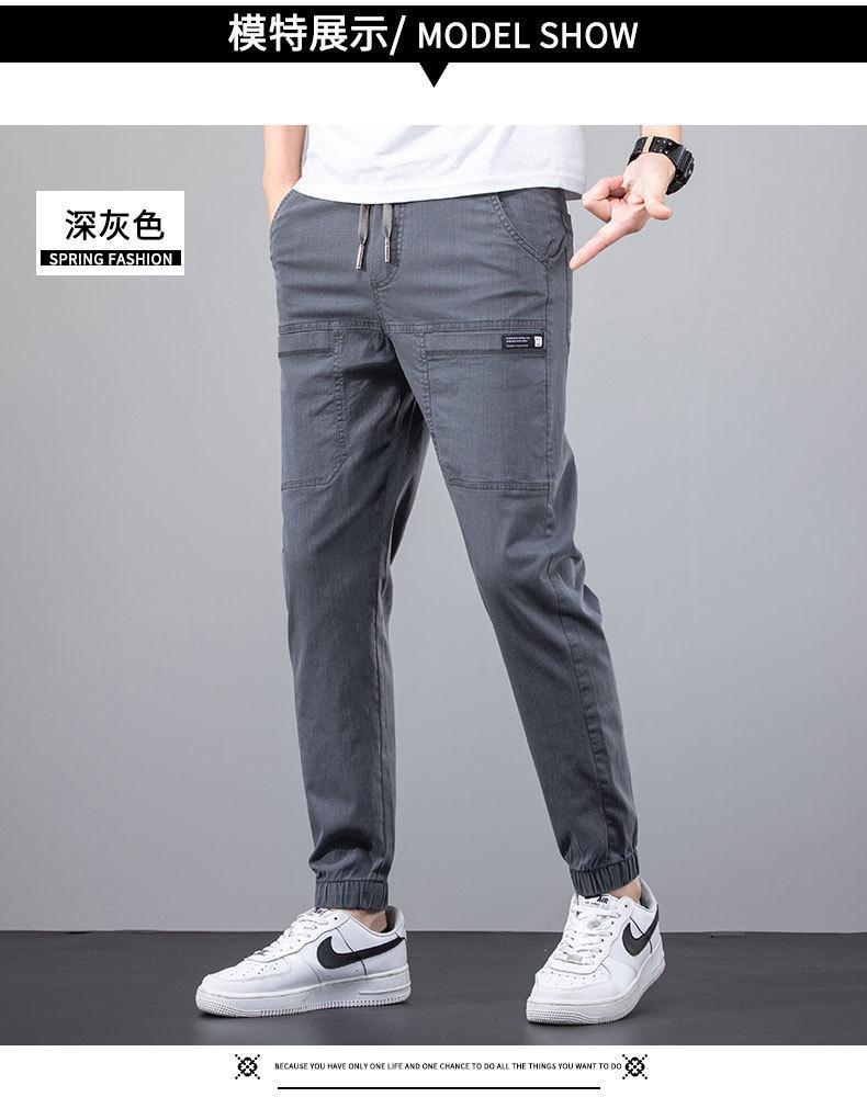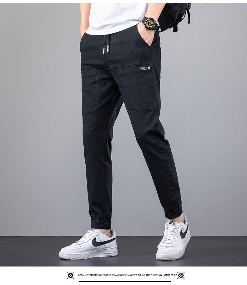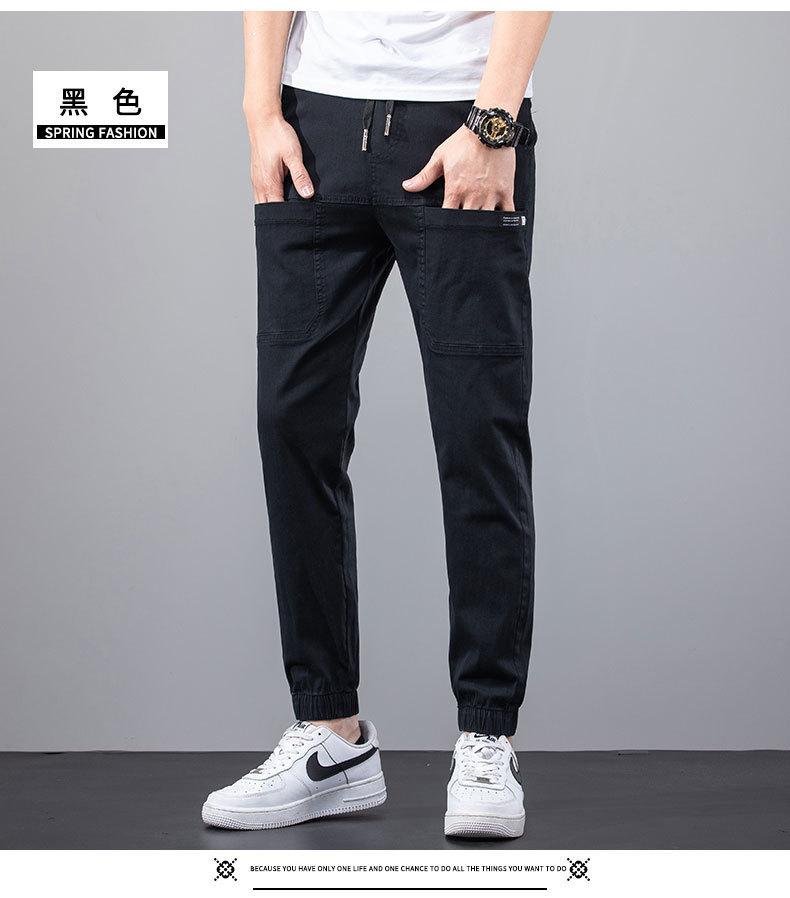 Pantalones casuales de otoño e invierno para hombre, con cintura elástica, rectos y pequeños, con seis bolsillos, estilo harén, holgados y ajustados.