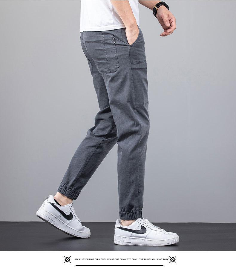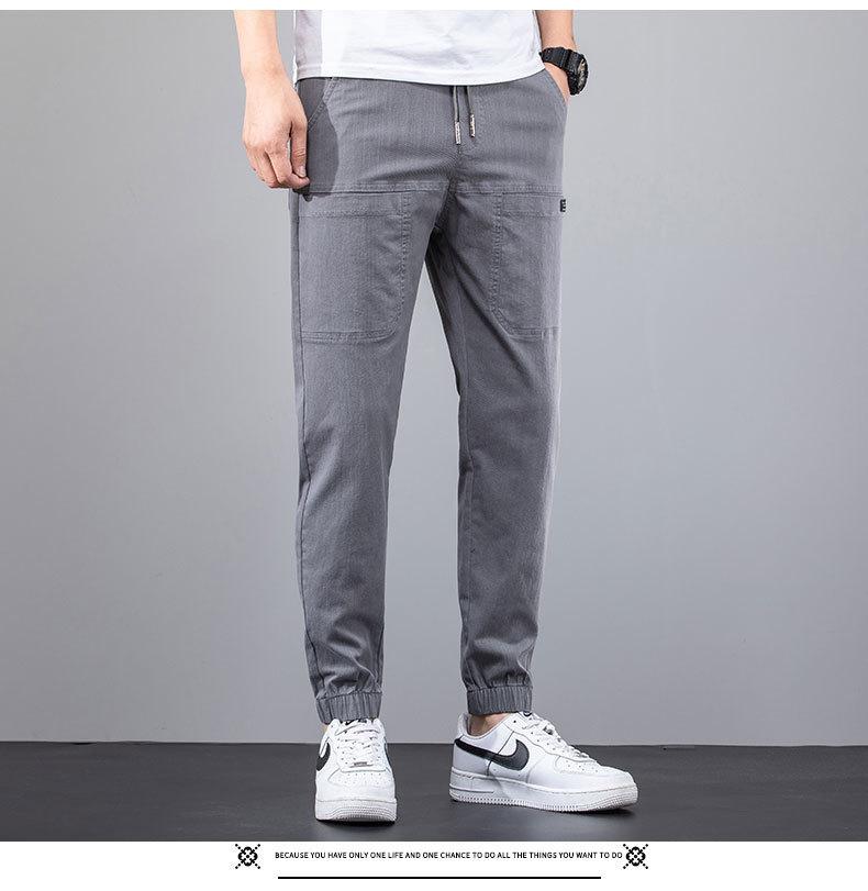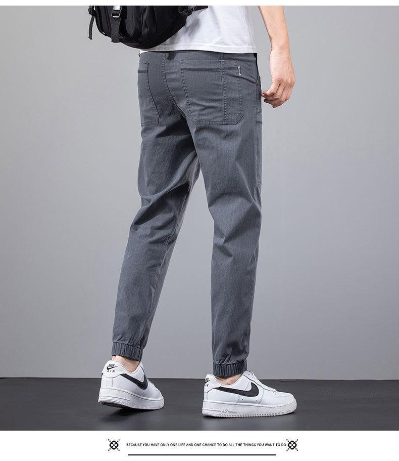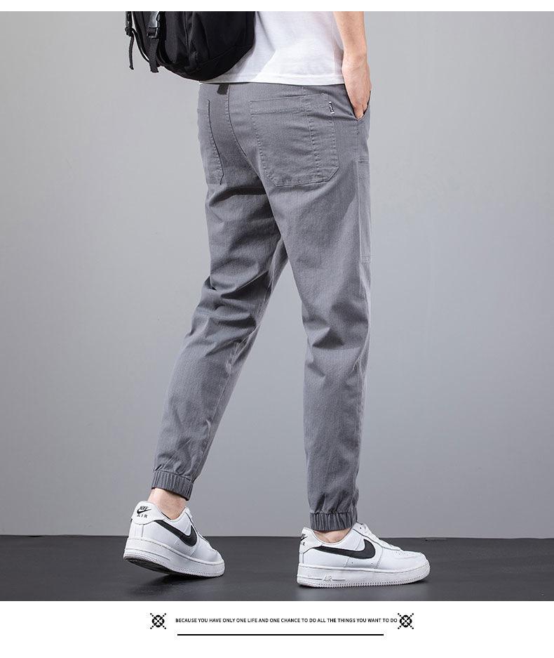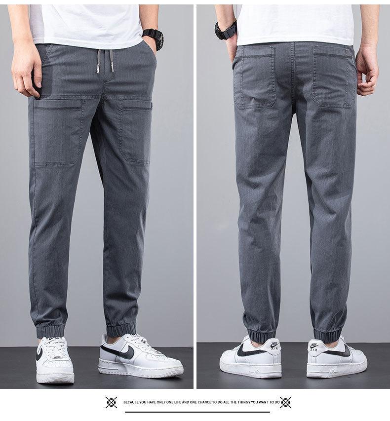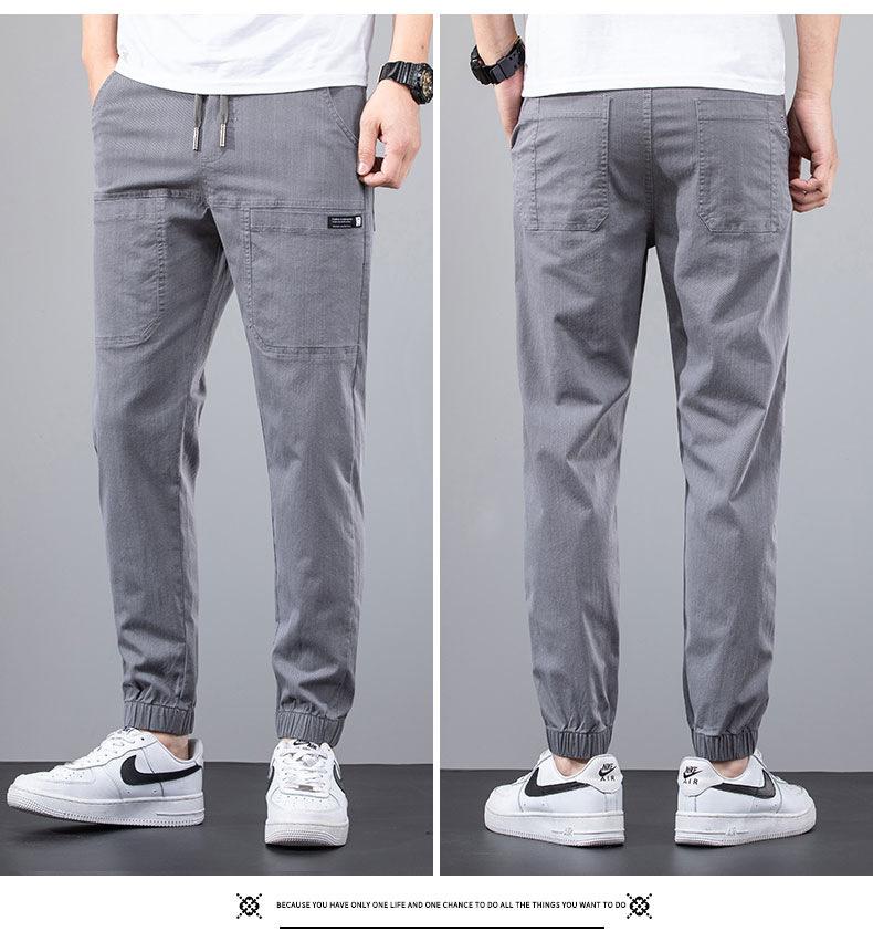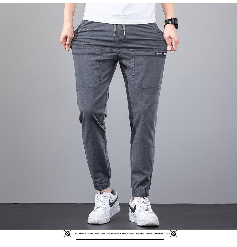 Pantalones casuales de otoño e invierno para hombre, con cintura elástica, rectos y pequeños, con seis bolsillos, estilo harén, holgados y ajustados.