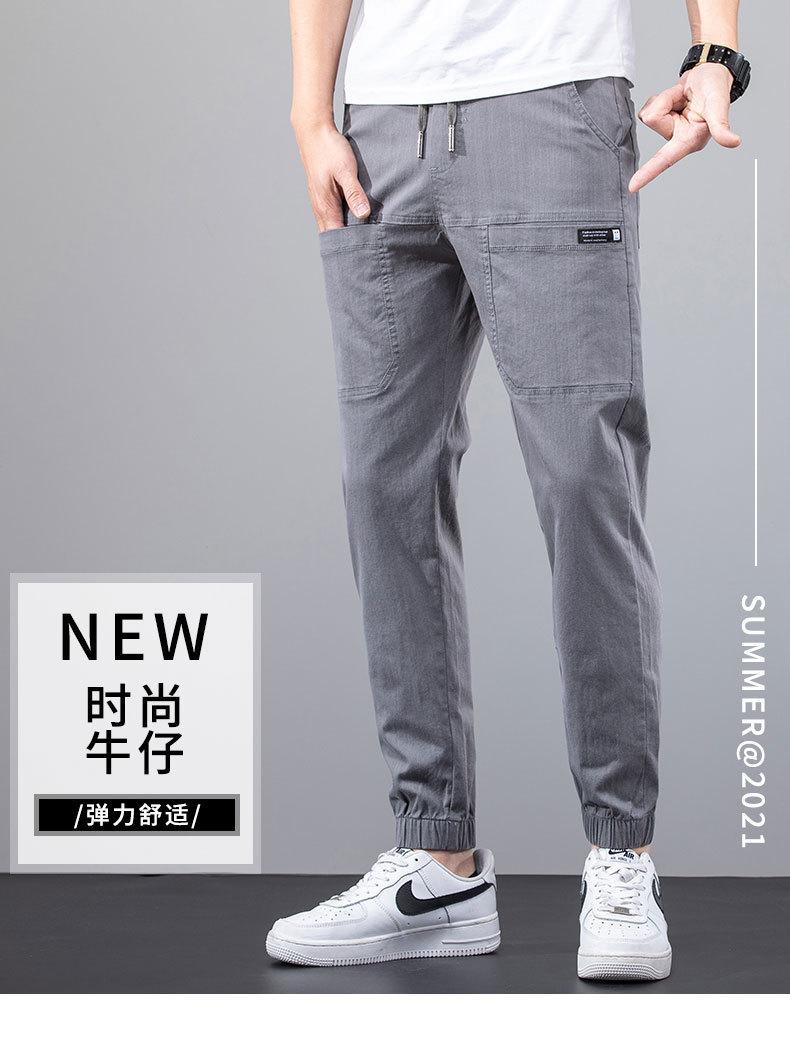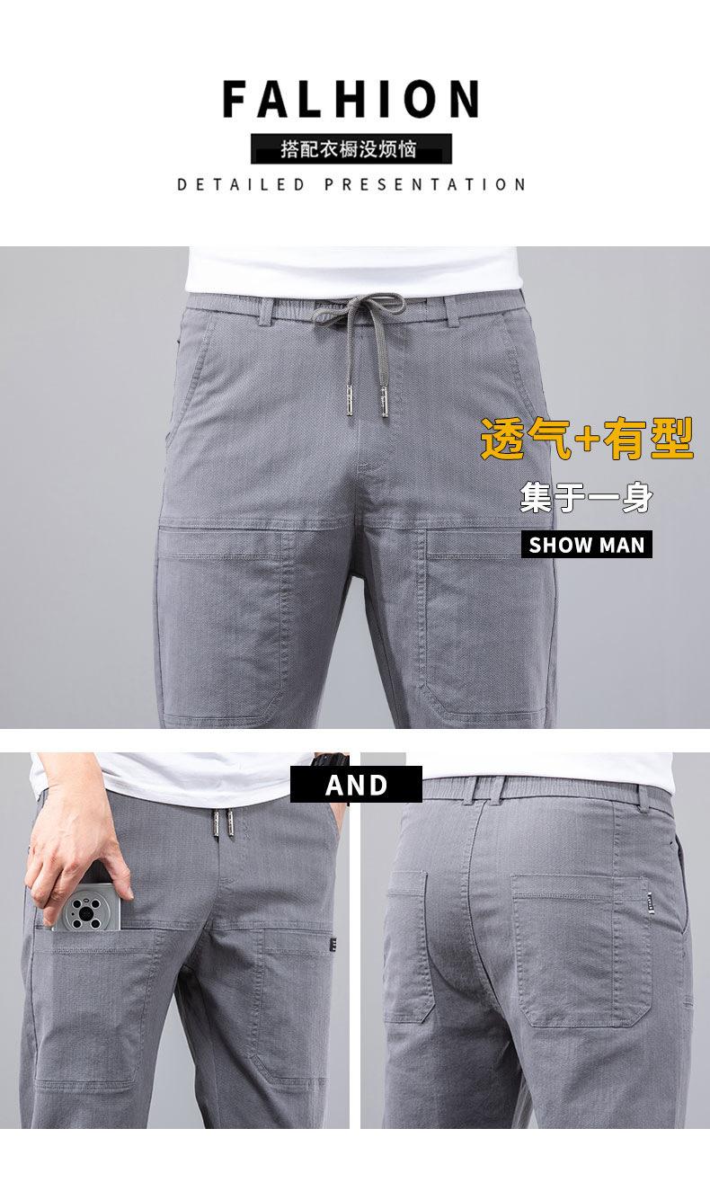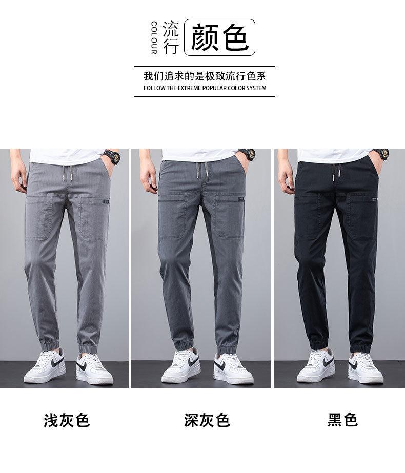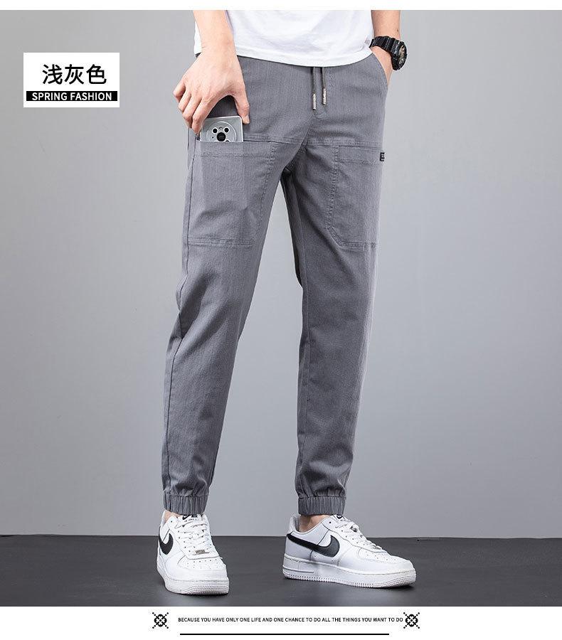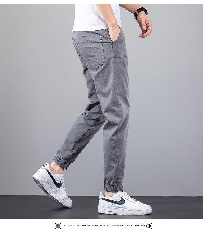 Pantalones casuales de otoño e invierno para hombre, con cintura elástica, rectos y pequeños, con seis bolsillos, estilo harén, holgados y ajustados.