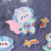 11. Primero coloca el parche donde quieras pegarlo.,El lado con adhesivo termofusible se adhiere a la ropa.(El pegamento no se puede arrancar), precaliente la plancha y planche desde el frente del parche10-20También puedes usar aguja e hilo para fijar el parche antes de plancharlo para evitar que se mueva.