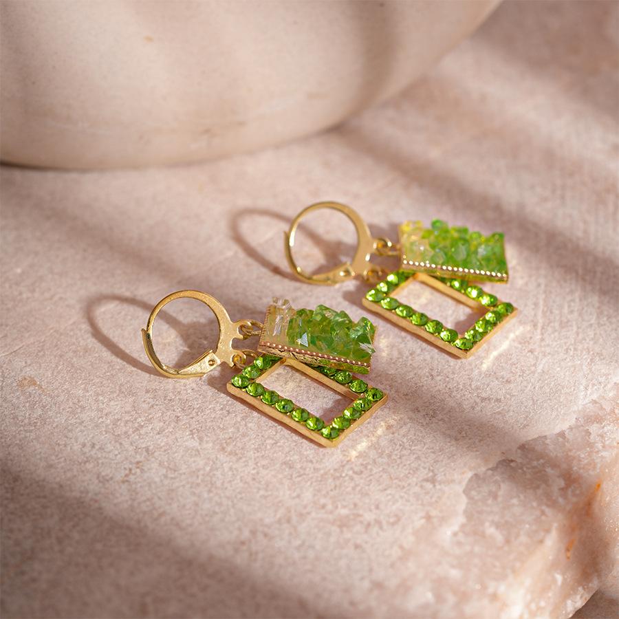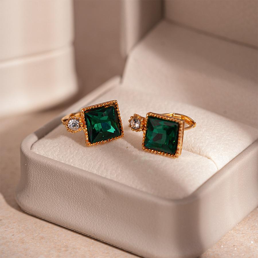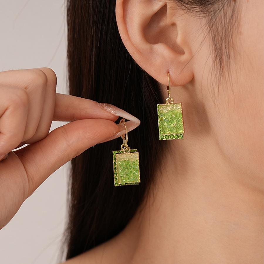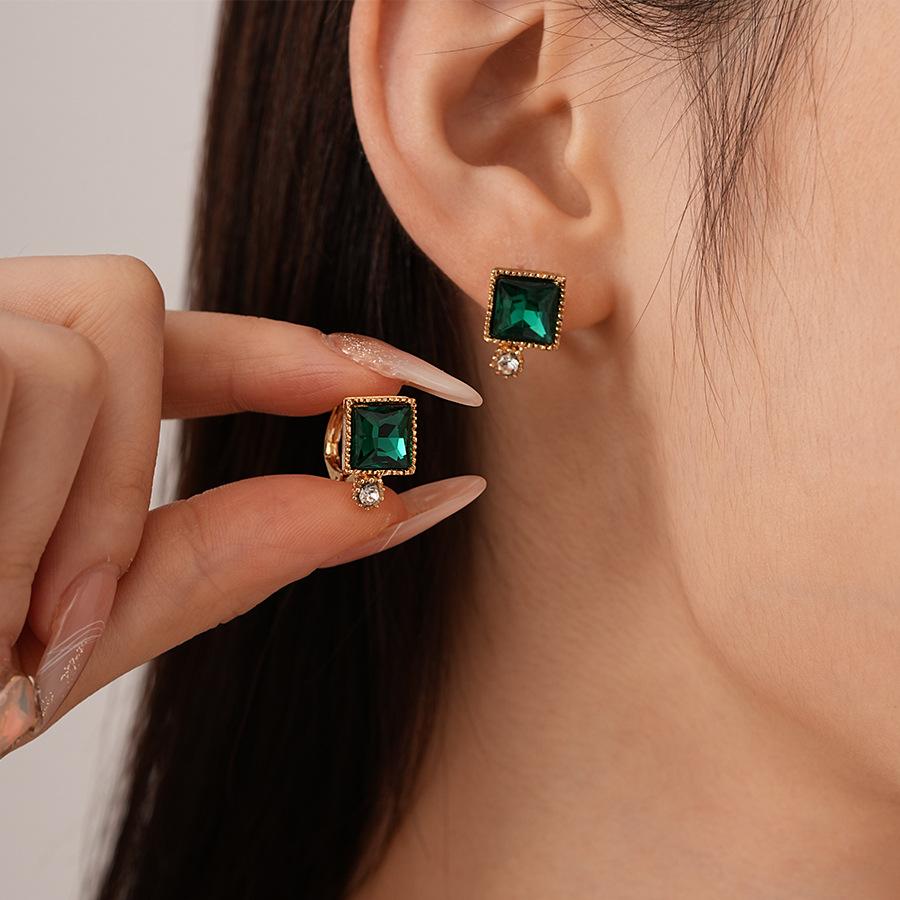 Pendientes vintage de plata con forma de alfiler, cuadrados, redondos y de diamantes de lujo, con luz verde, sencillos, pequeños, geométricos, elegantes, de alta gama para mujer.
