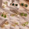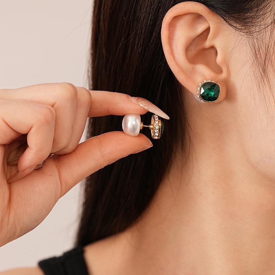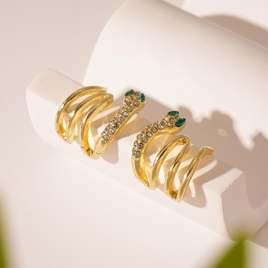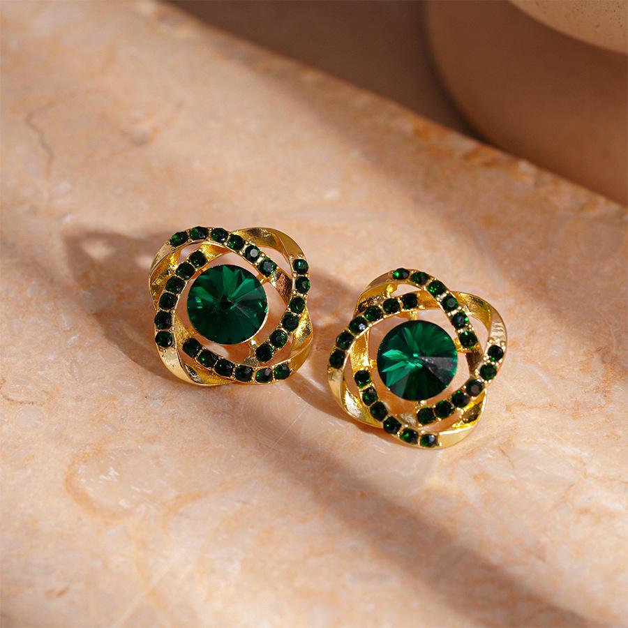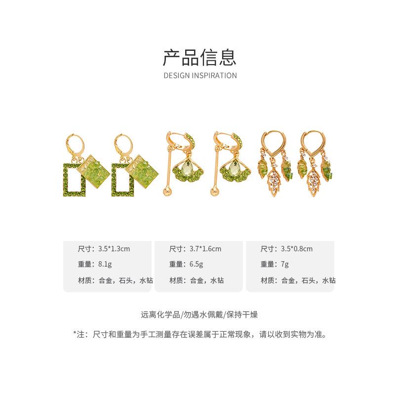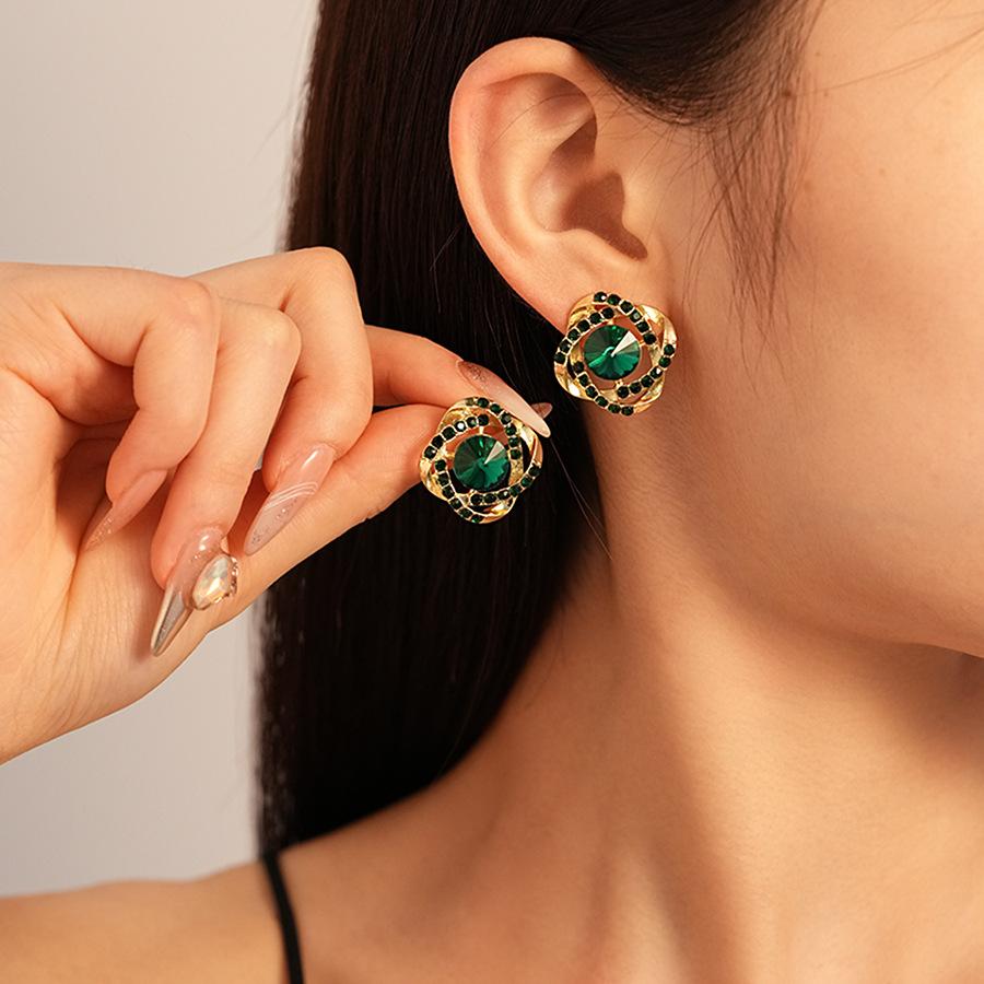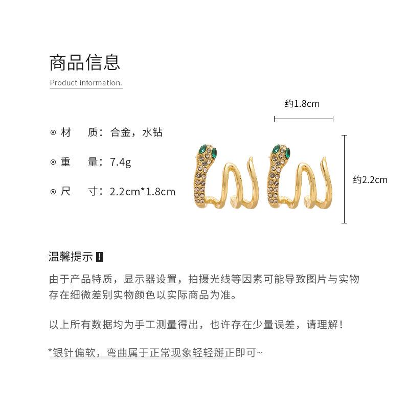 1# Silver Pin-Green Surround Diamond Stud Earrings, 3# silver needle-green diamond snake earrings, 5# green di...