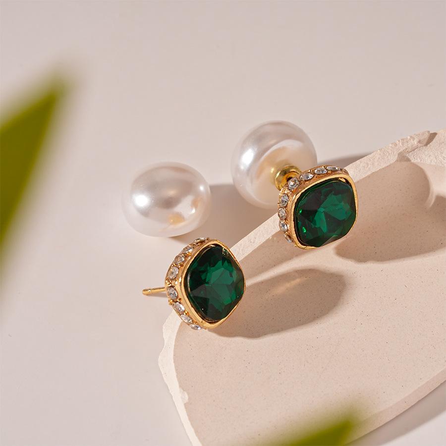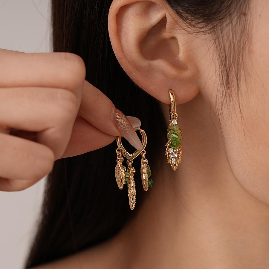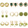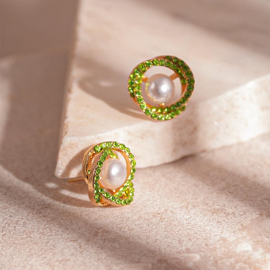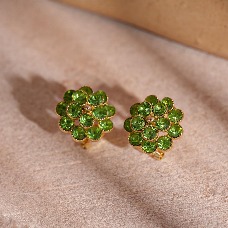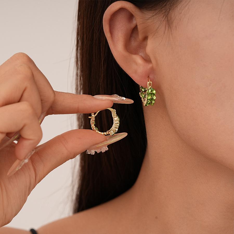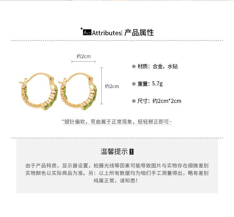 1# Silver Pin-Green Surround Diamond Stud Earrings, 3# silver needle-green diamond snake earrings, 5# green di...