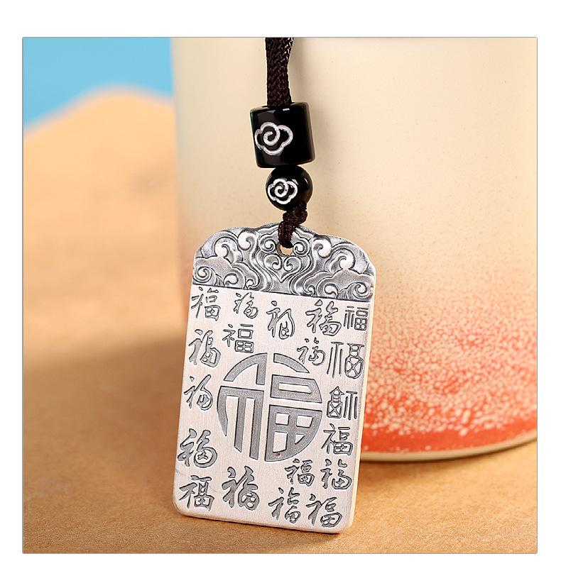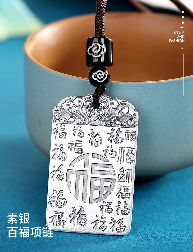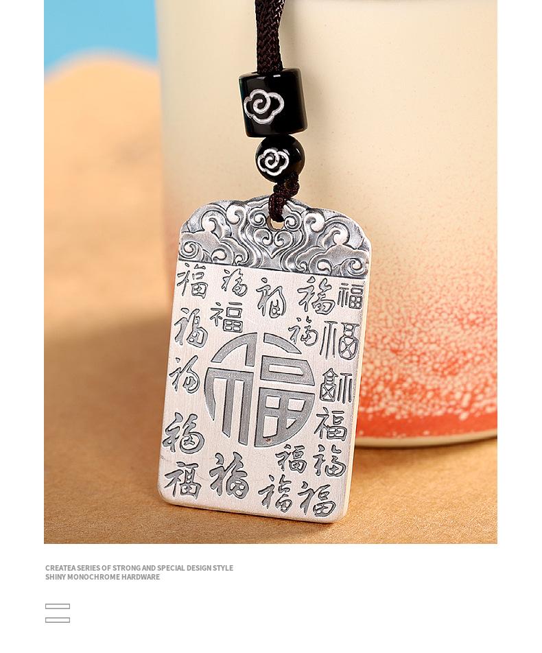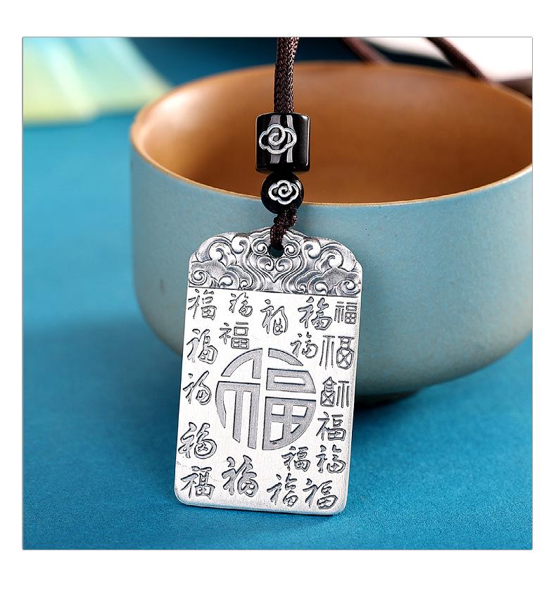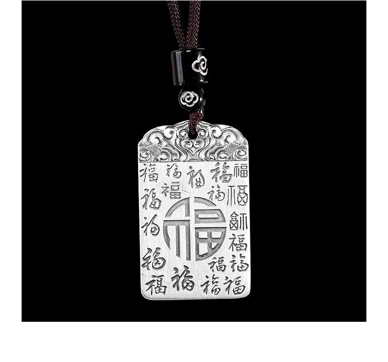 El personaje de plata de ley 999 retro Baifu Ping An No incidente marca collar unisex colgante cuerpo protección colgante