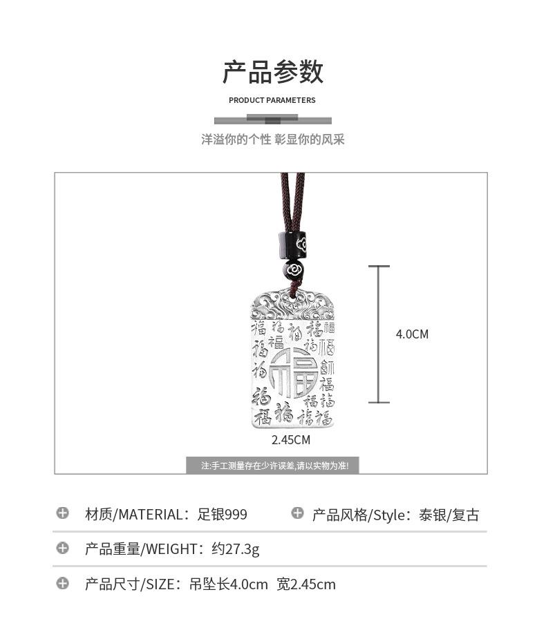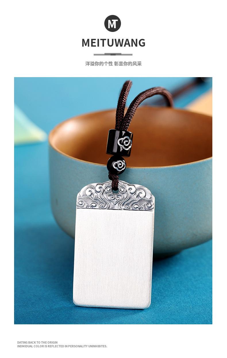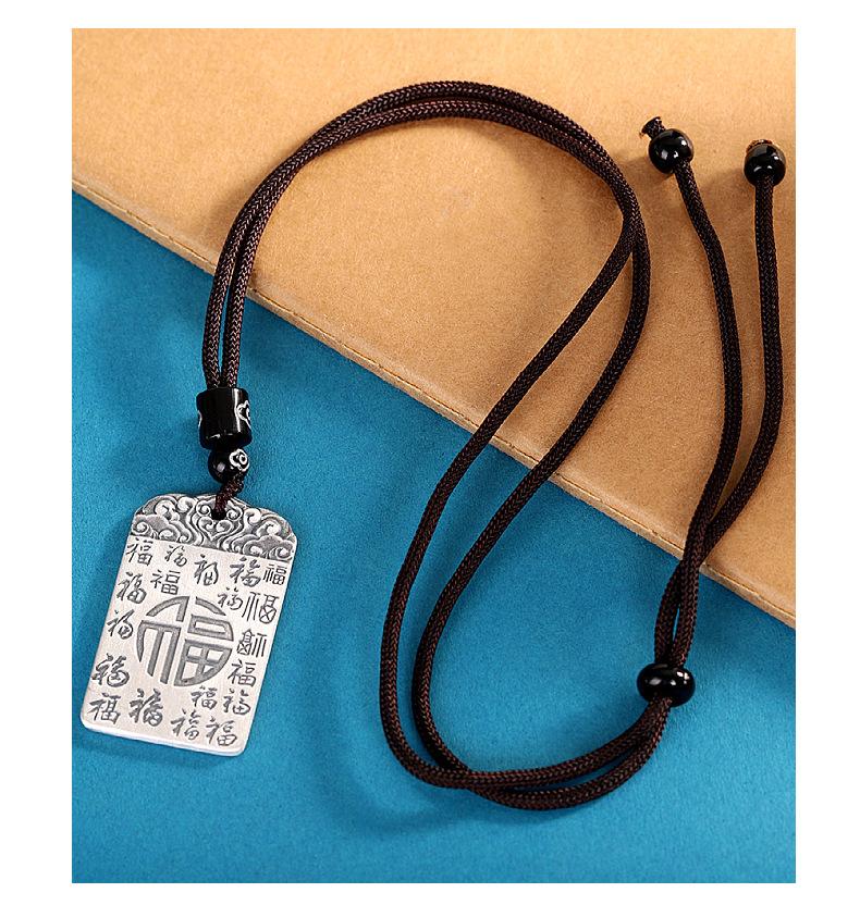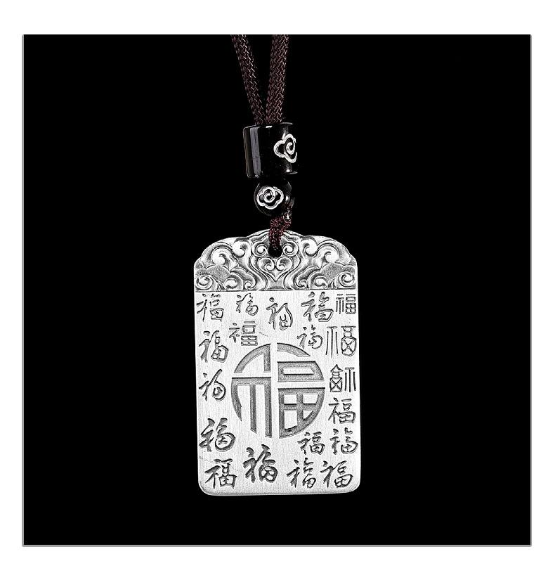El personaje de plata de ley 999 retro Baifu Ping An No incidente marca collar unisex colgante cuerpo protección colgante