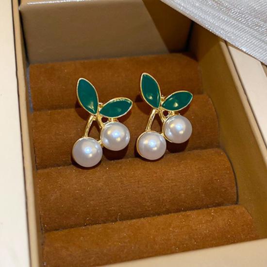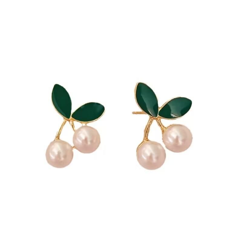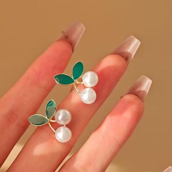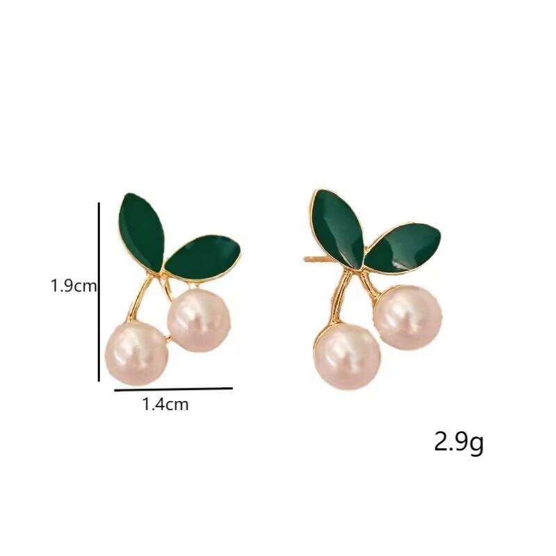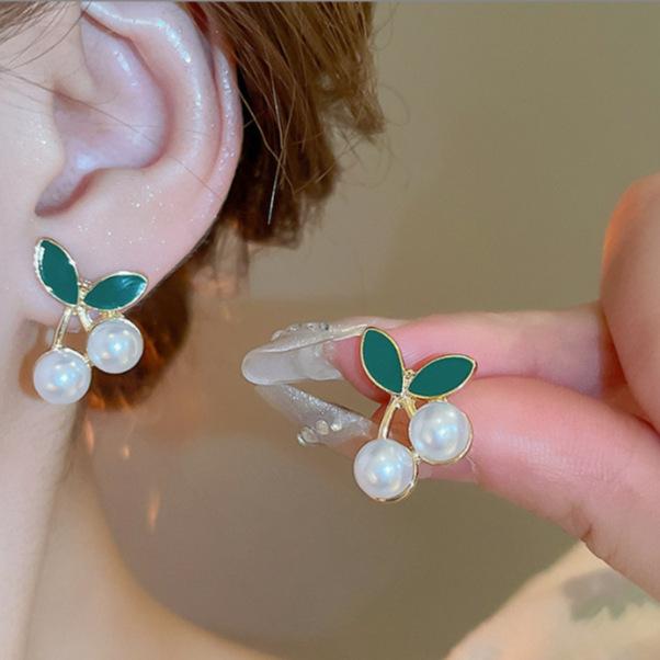 Pendientes de cereza con perla retro francesa, de moda, con personalidad sencilla y diseño creativo.