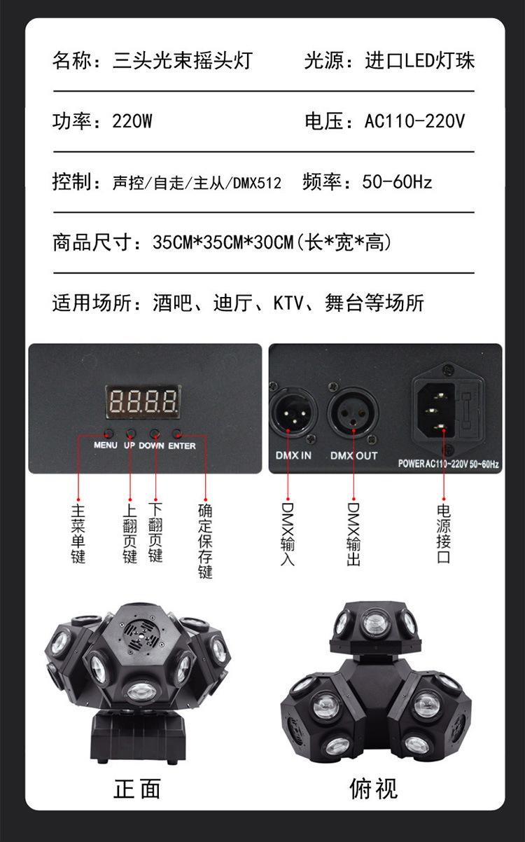 Barra de Luz Beam de Cabeza Móvil de Tres Cabezales LED Ktv Luz Láser Activada por Voz Luz Láser Giratoria Efecto Linterna de Escenario Comercial