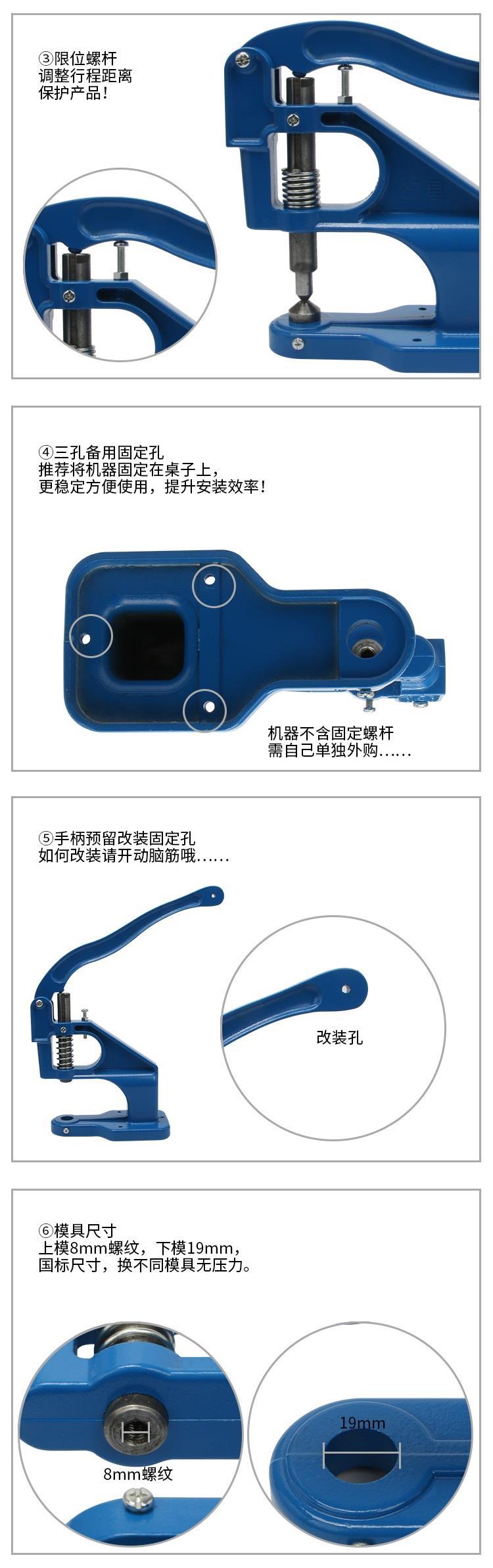 Máquina de Hebillas Manual Prensa de Mano Máquina de Hebillas Manual Ojal de Aire de Maíz Hebilla de Cuello Tapa Herramienta de Instalación de Botones de Clavo Estante de Exhibición