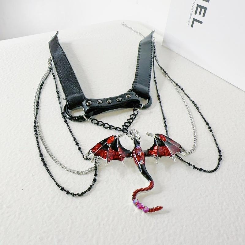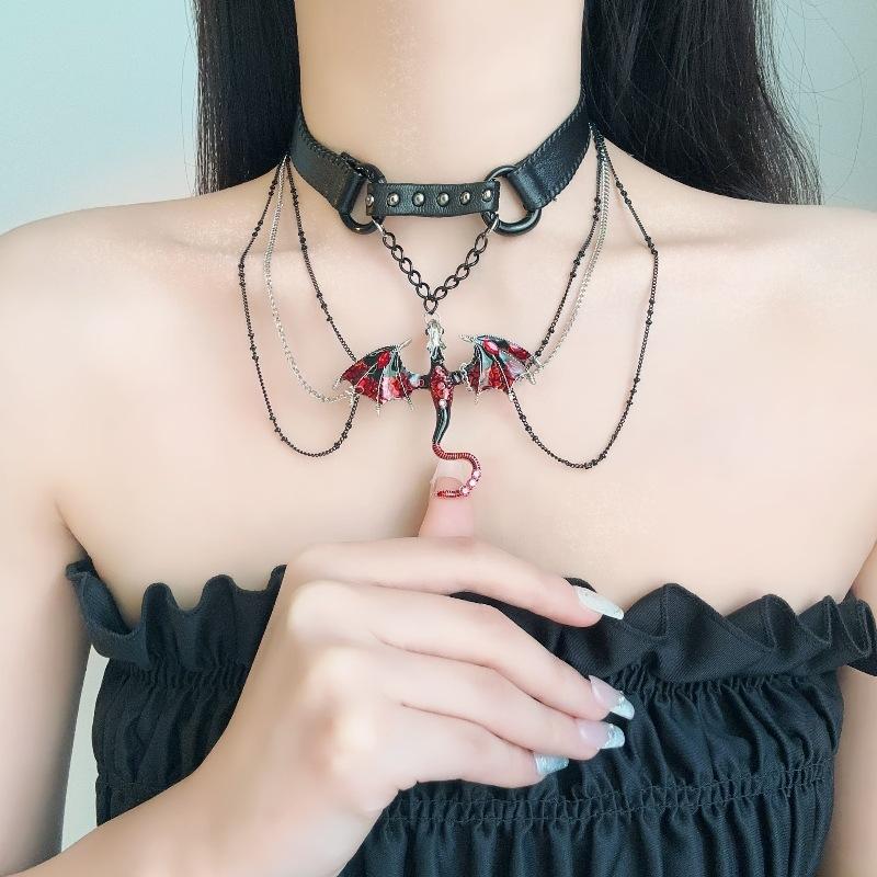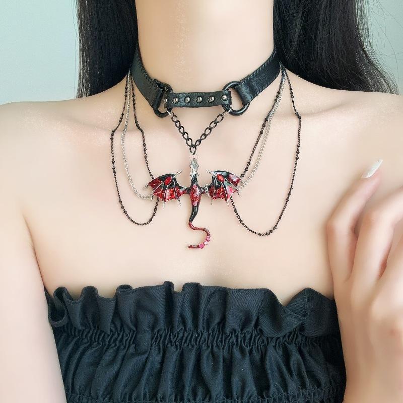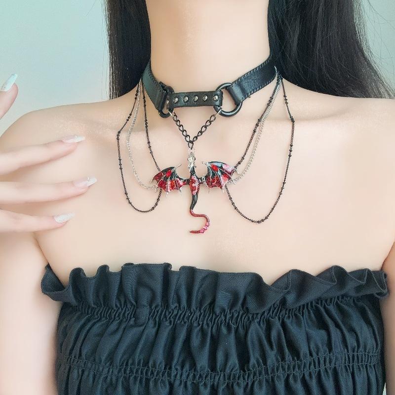 Gargantilla de cuero punk de estilo frío para mujer, collar con borlas y correa para el cuello, accesorios, collar de cadena de clavícula de alta calidad