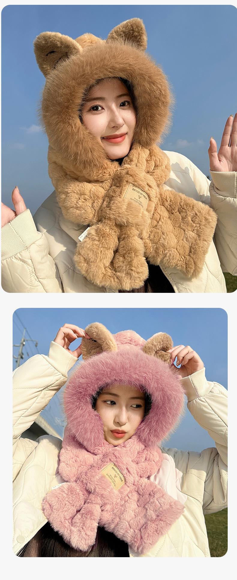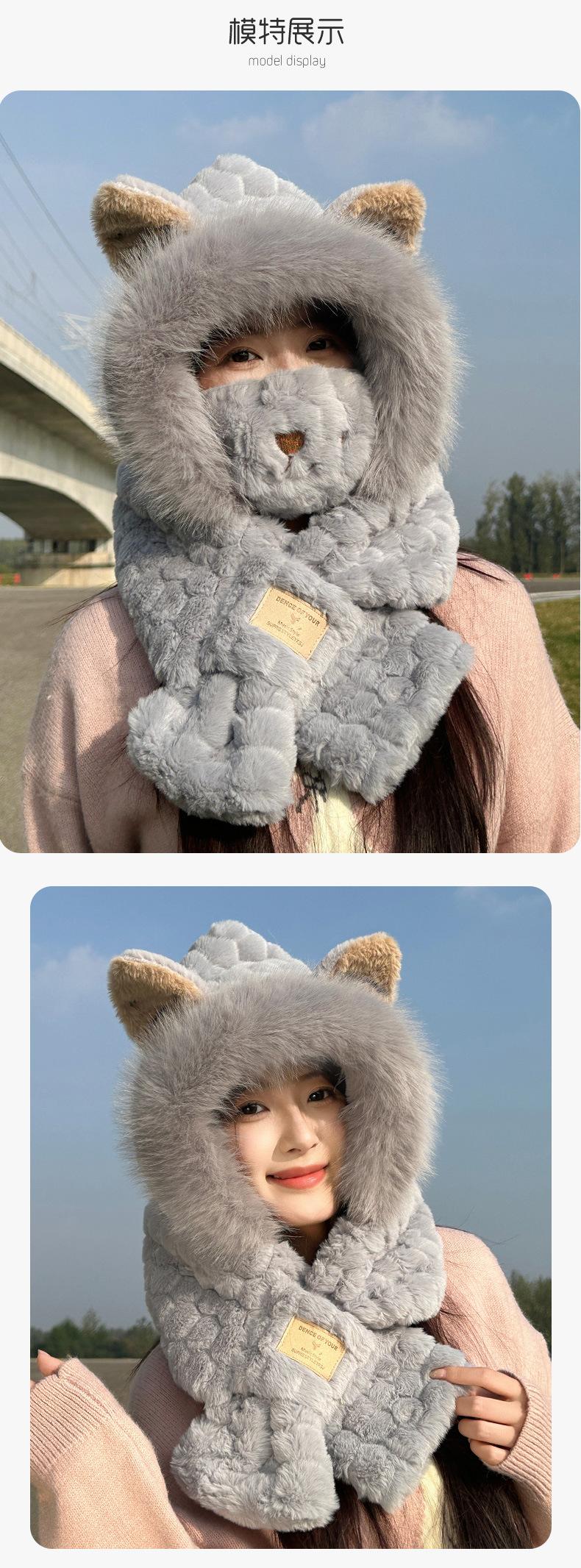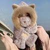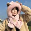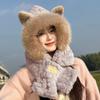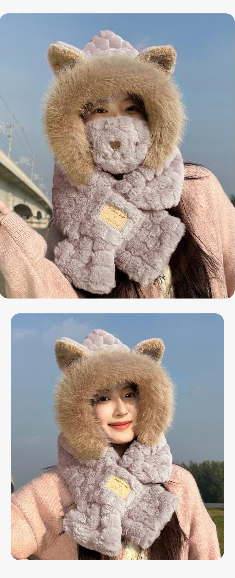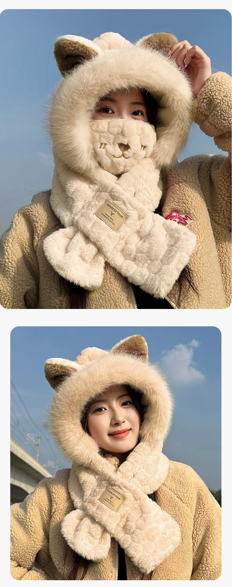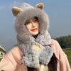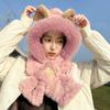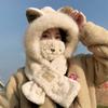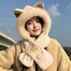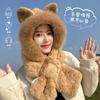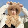 Gorro de oso pequeño para mujer, otoño e invierno, bonito gorro cálido que combina con todo, bufanda con capucha, gorro de felpa de una pieza, doble capa y grueso, nuevo estilo.
