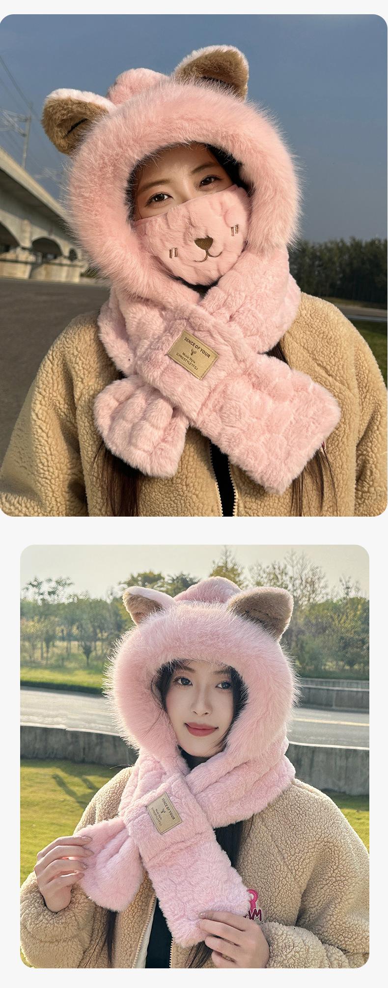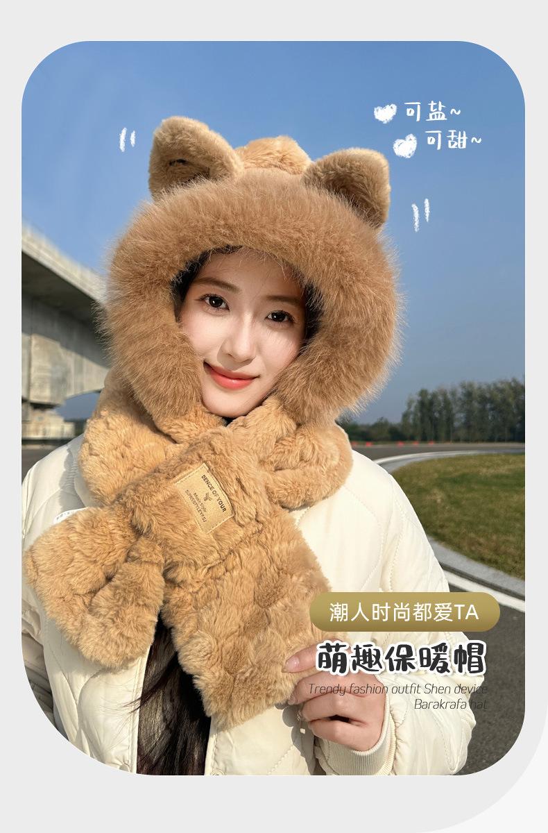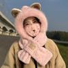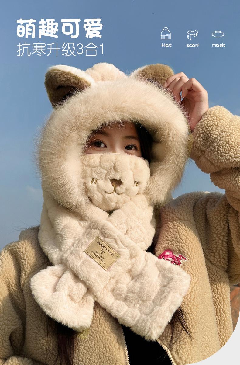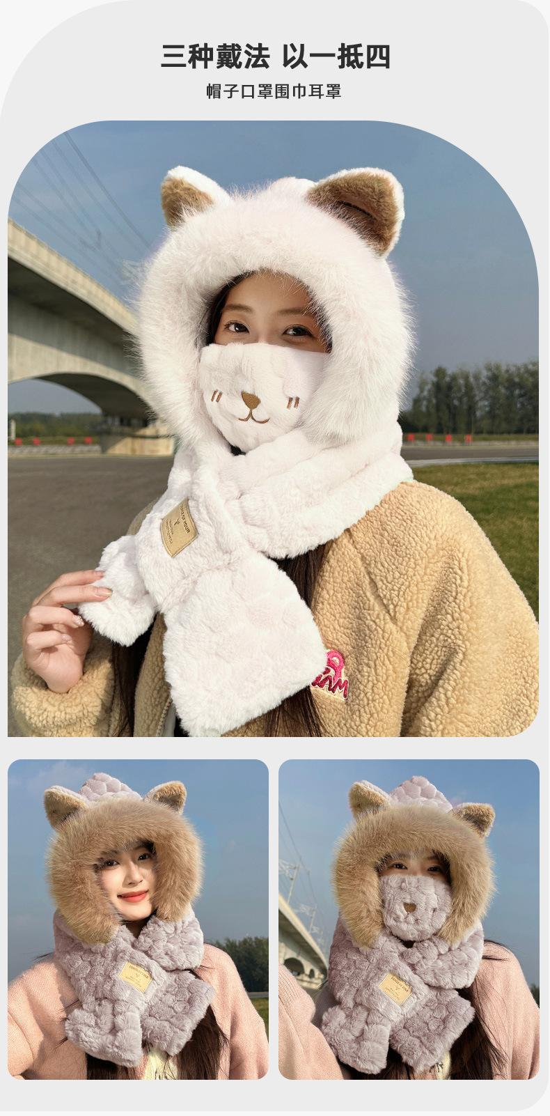 Gorro de oso pequeño para mujer, otoño e invierno, bonito gorro cálido que combina con todo, bufanda con capucha, gorro de felpa de una pieza, doble capa y grueso, nuevo estilo.
