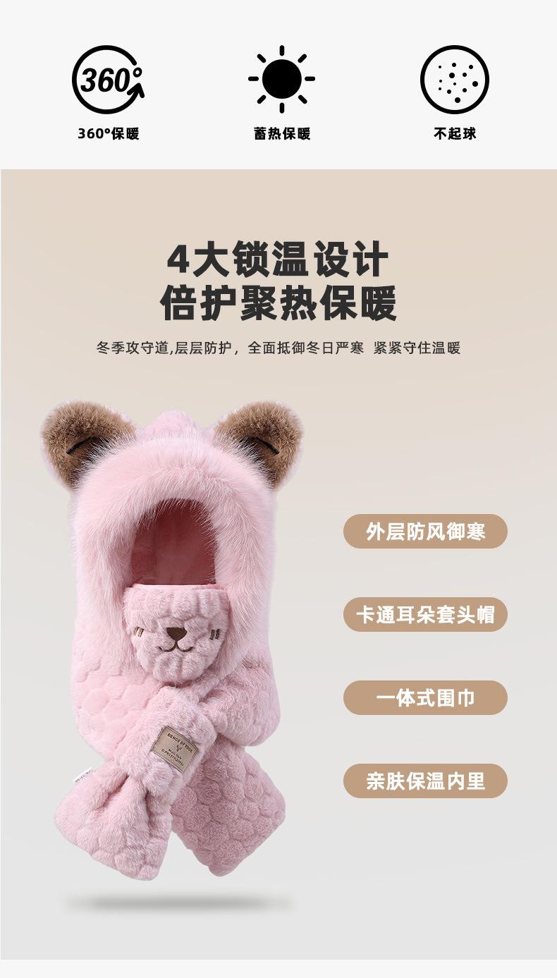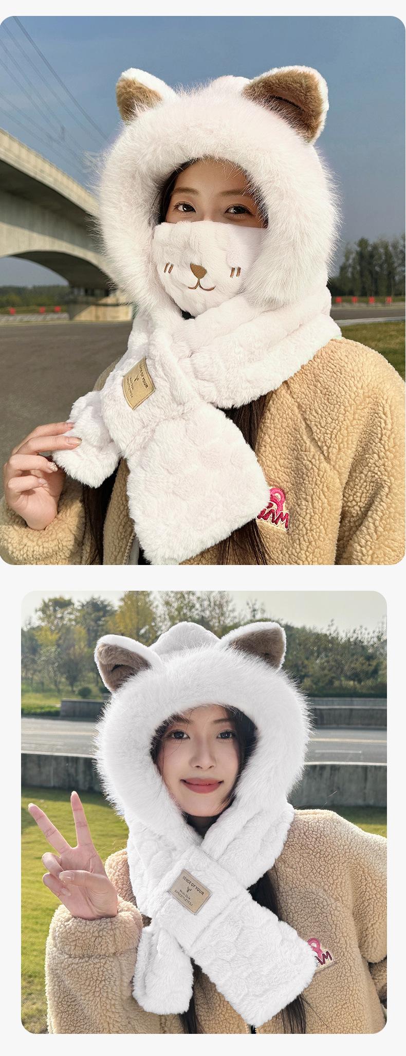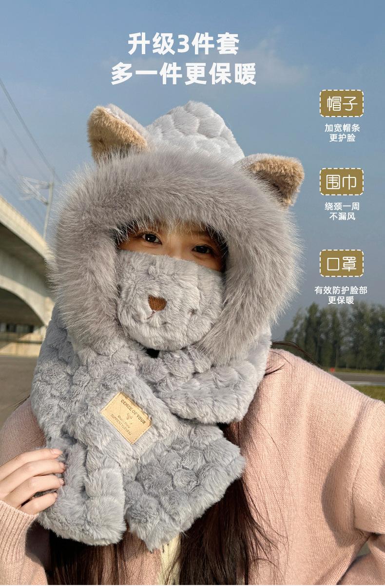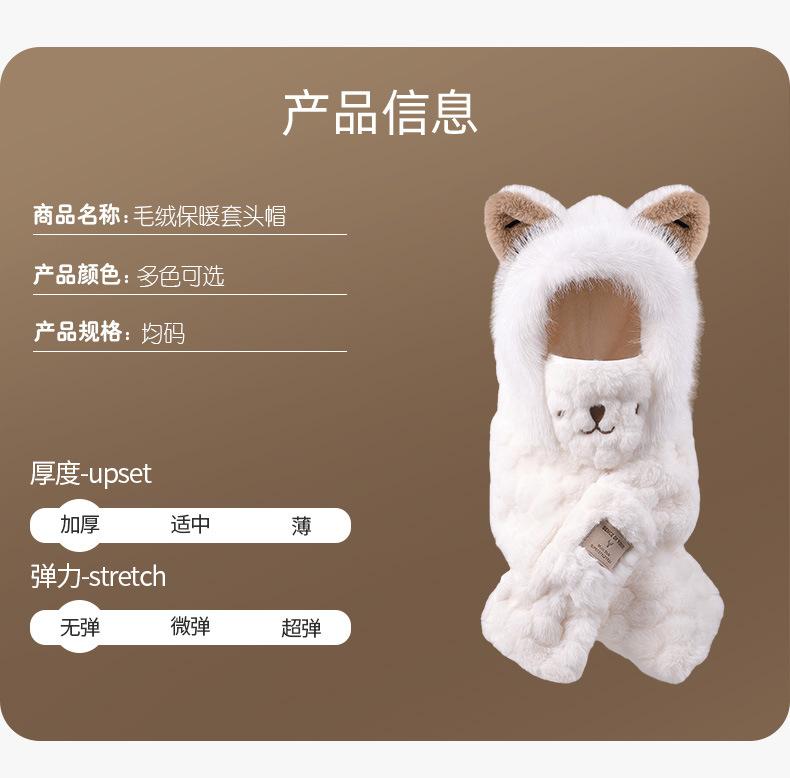 Gorro de oso pequeño para mujer, otoño e invierno, bonito gorro cálido que combina con todo, bufanda con capucha, gorro de felpa de una pieza, doble capa y grueso, nuevo estilo.