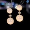 Aretes de temperamento elegante de moda de lujo ligero, aretes de flor de circonita de alta gama para vestido de fiesta con adelgazamiento facial