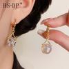 Pendientes de aguja de plata s925 con incrustaciones de circonita estilo palaciego de lujo ligero francés temperamento elegante retro pendientes de perlas en forma de lágrima