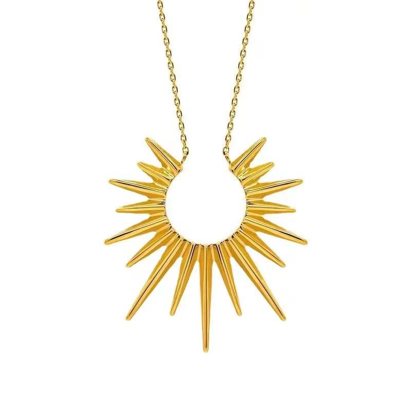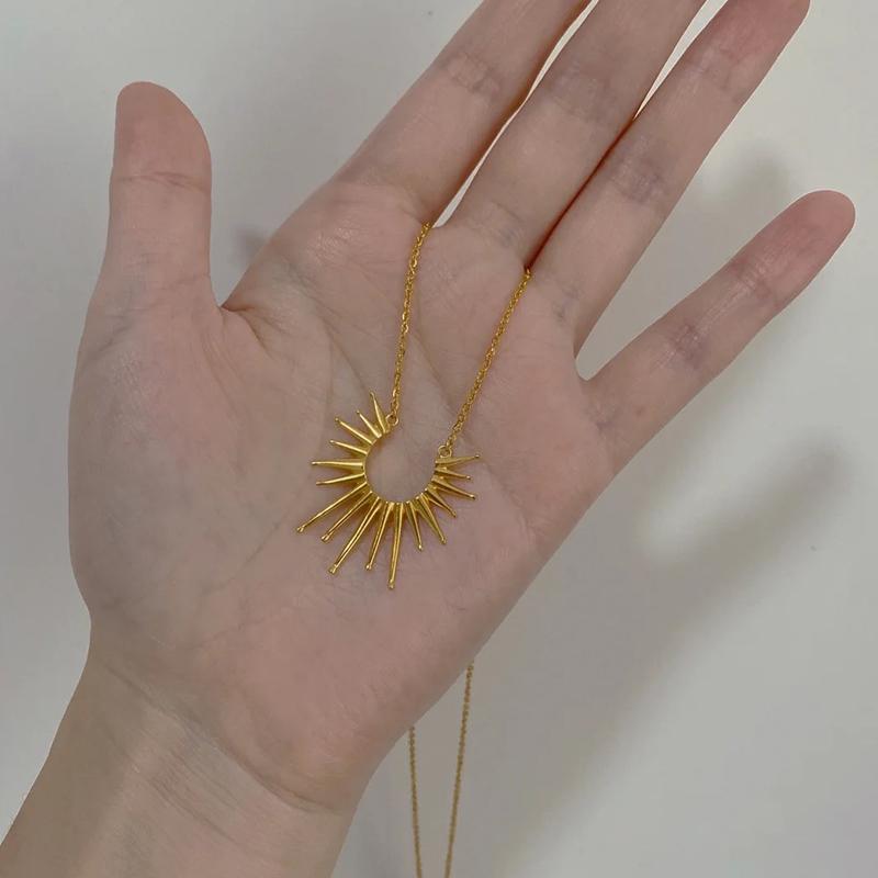 ¡Alto diseñador! Collar de sol europeo y americano para mujer, cadena de clavícula de acero de titanio y oro de 18 quilates, nicho ligero, de lujo, con personalidad apilada.