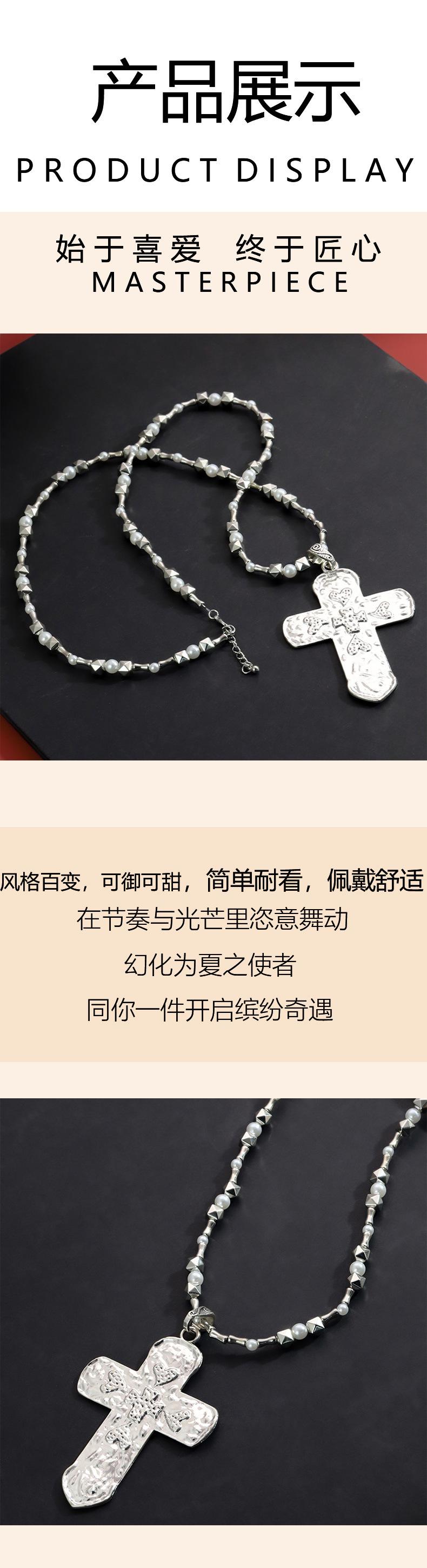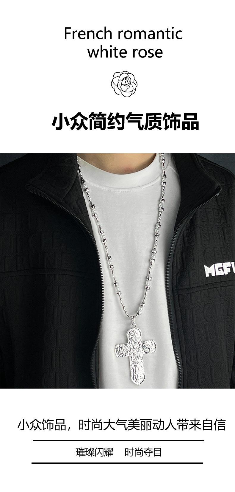 Collar con colgante de cruz de temperamento exagerado y moderno de hip-hop europeo y americano, collar de cadena de suéter largo con personalidad de moda