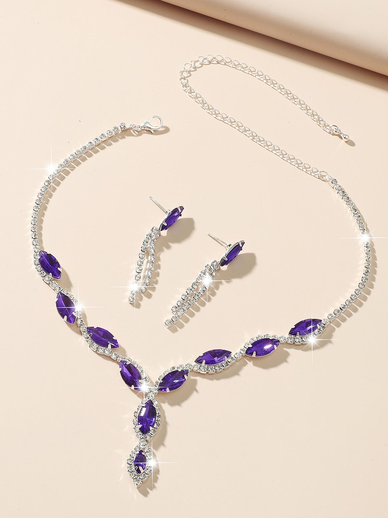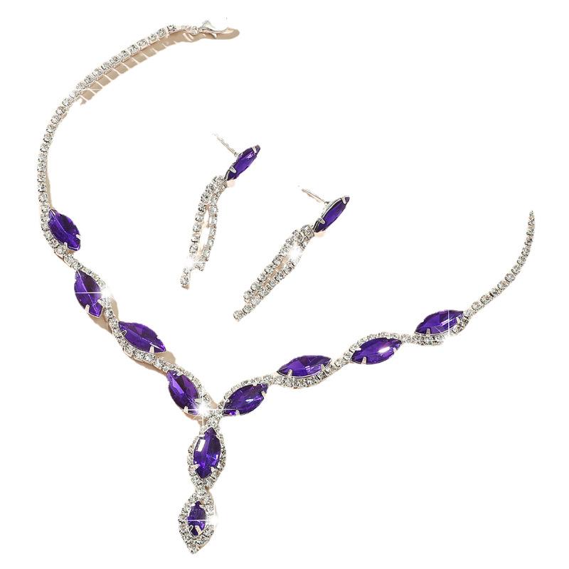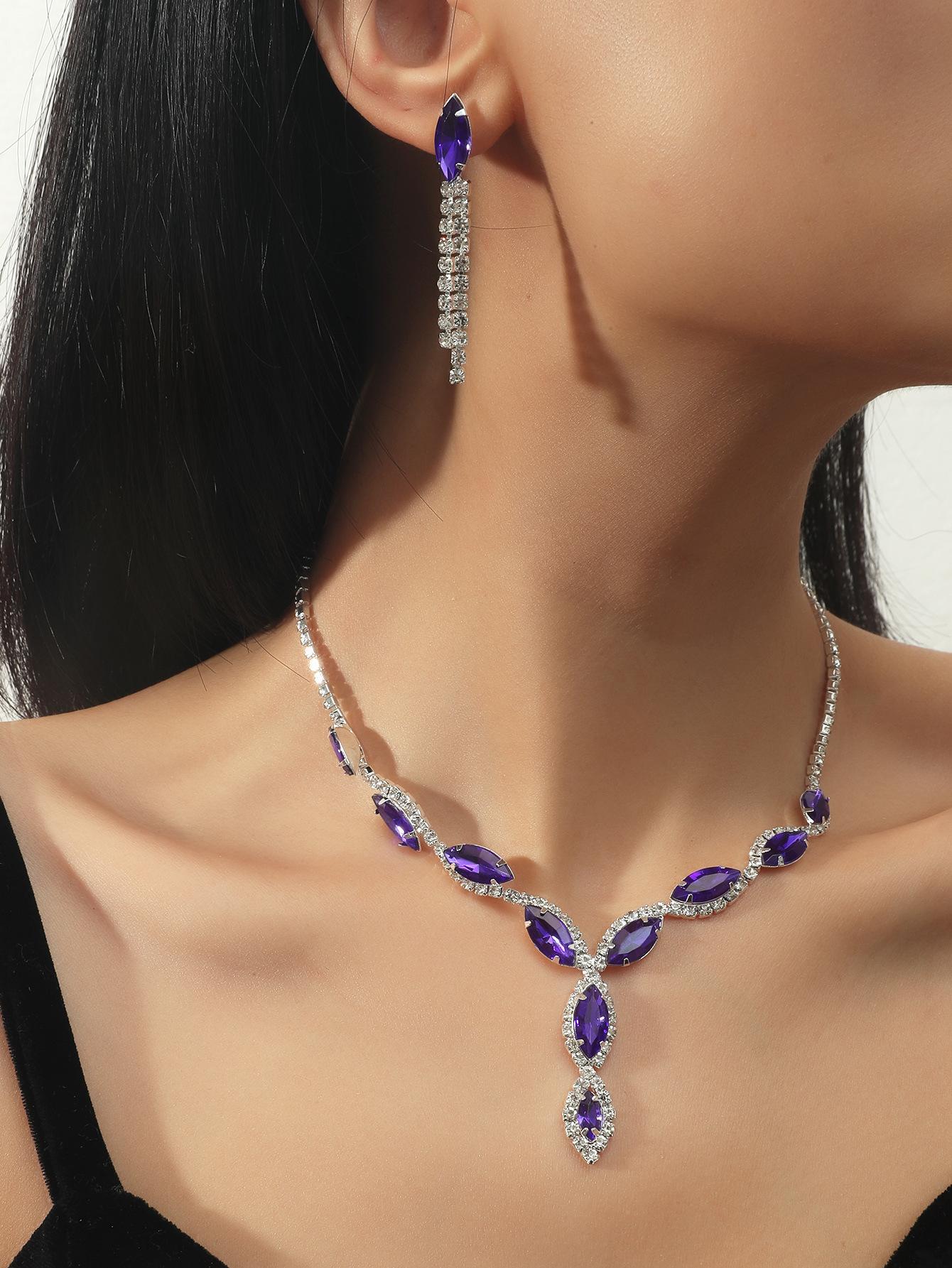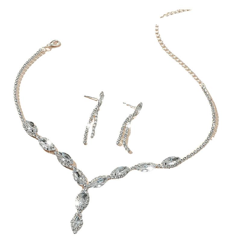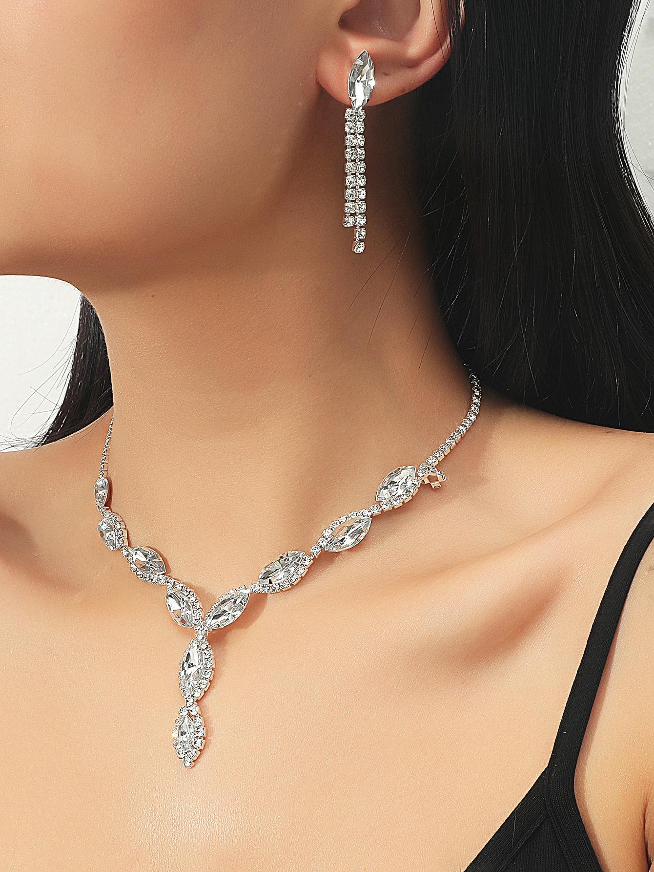 Collar de Diamantes Sencillo de Moda de Venta Caliente Aretes Estilo Europeo y Americano Traje de Aretes de Novia Juego de 2 Piezas