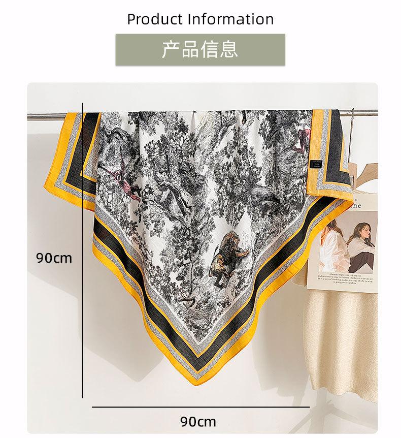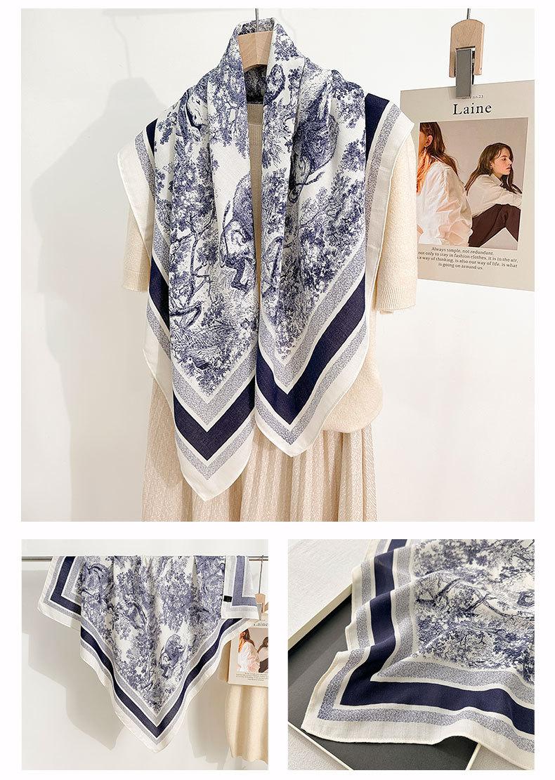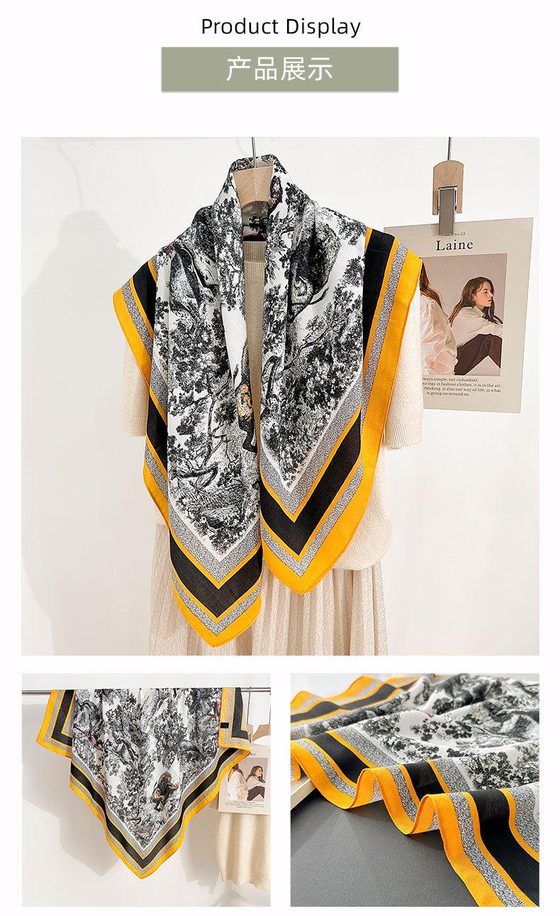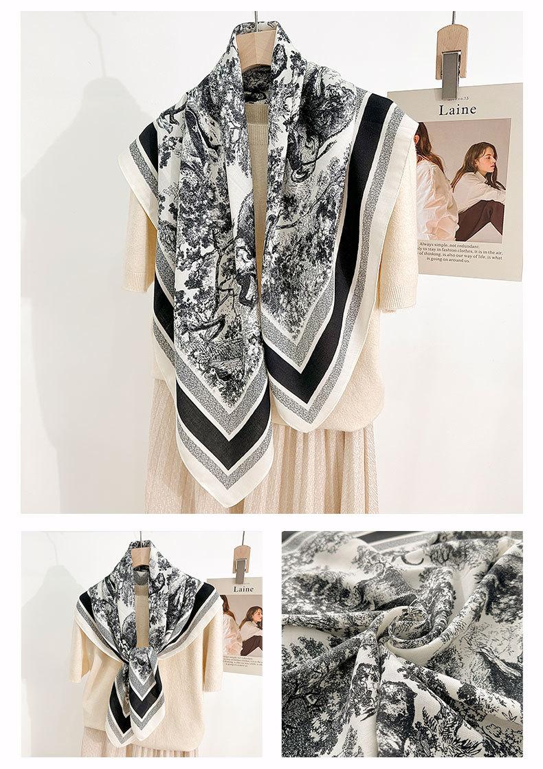 Bufanda Estilo Coreano Retro Personalidad Pradera León Estampado Moda Sentido de Alta Gama Vestido Espiga 90 Bufanda Decorativa