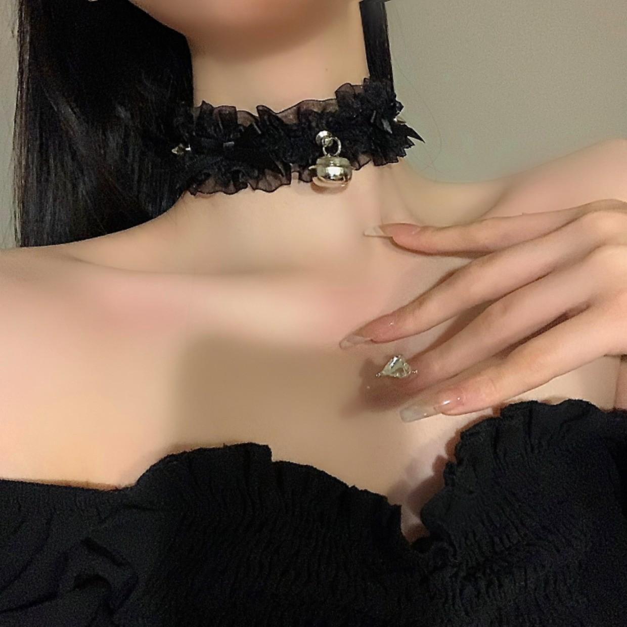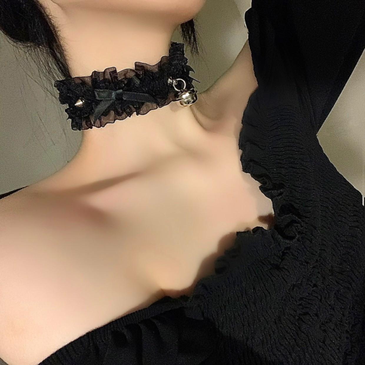 Collar con cascabel pequeño de encaje y lazo para mujer, gargantilla con correa para el cuello, accesorio para el cuello, cadena para clavícula, collar popular de alta gama