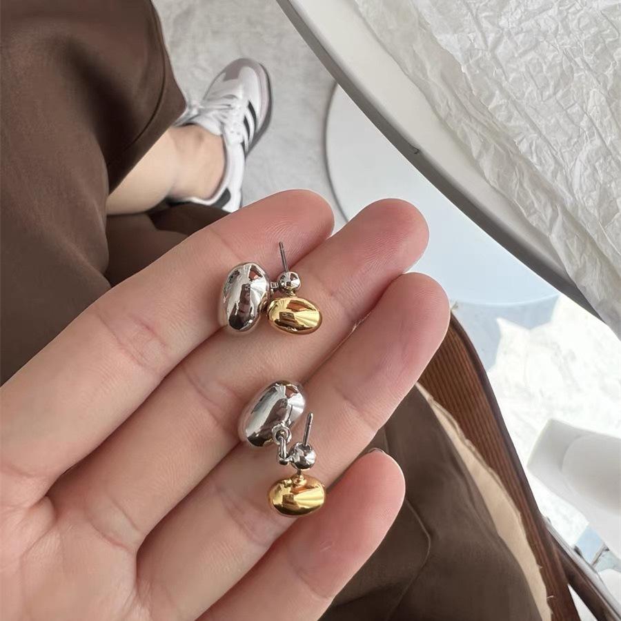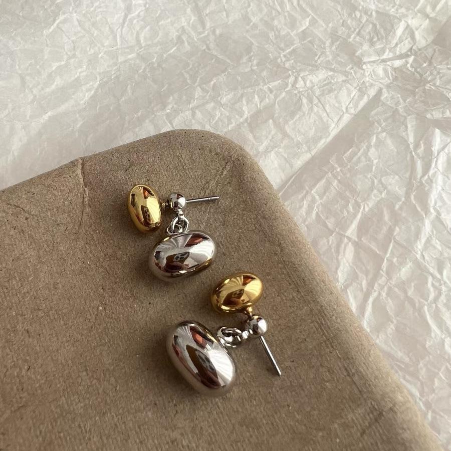 Aretes Ovalados de Metal con Diseño Nicho Colgantes Traseros Aretes Minimalistas Elegantes de Lujo Ligero Frío Moda Aretes para Mujer