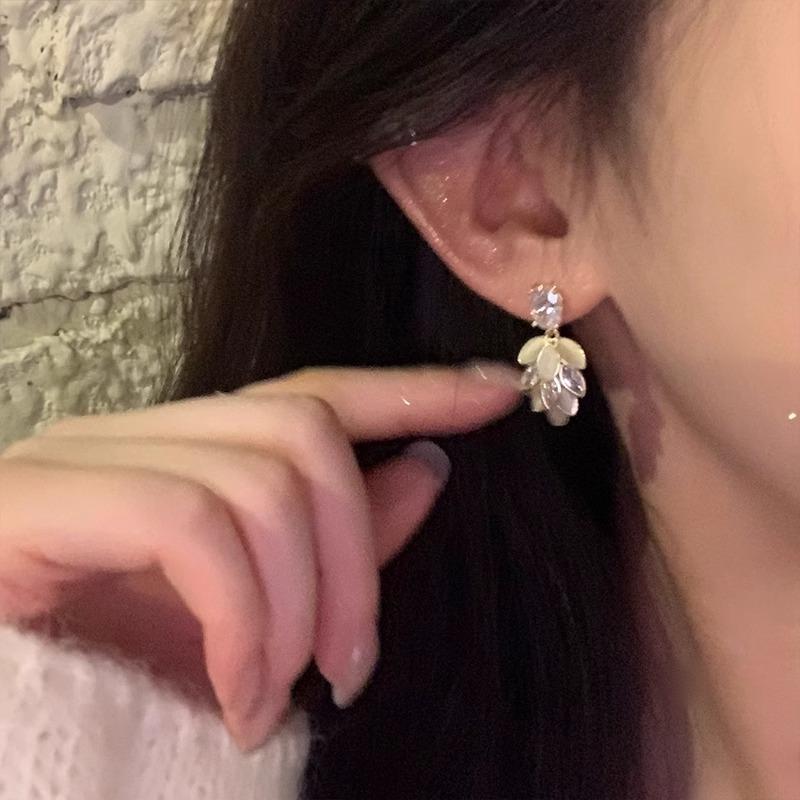 Pendientes de borlas con flores de circonio elegantes de estilo coreano para otoño e invierno, pendientes únicos con sentido avanzado para mujer, pendientes de moda simple.