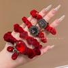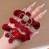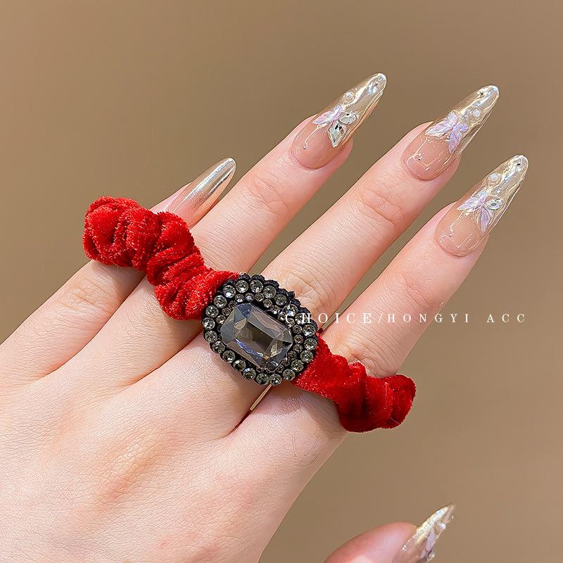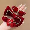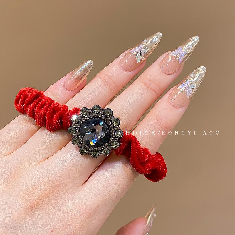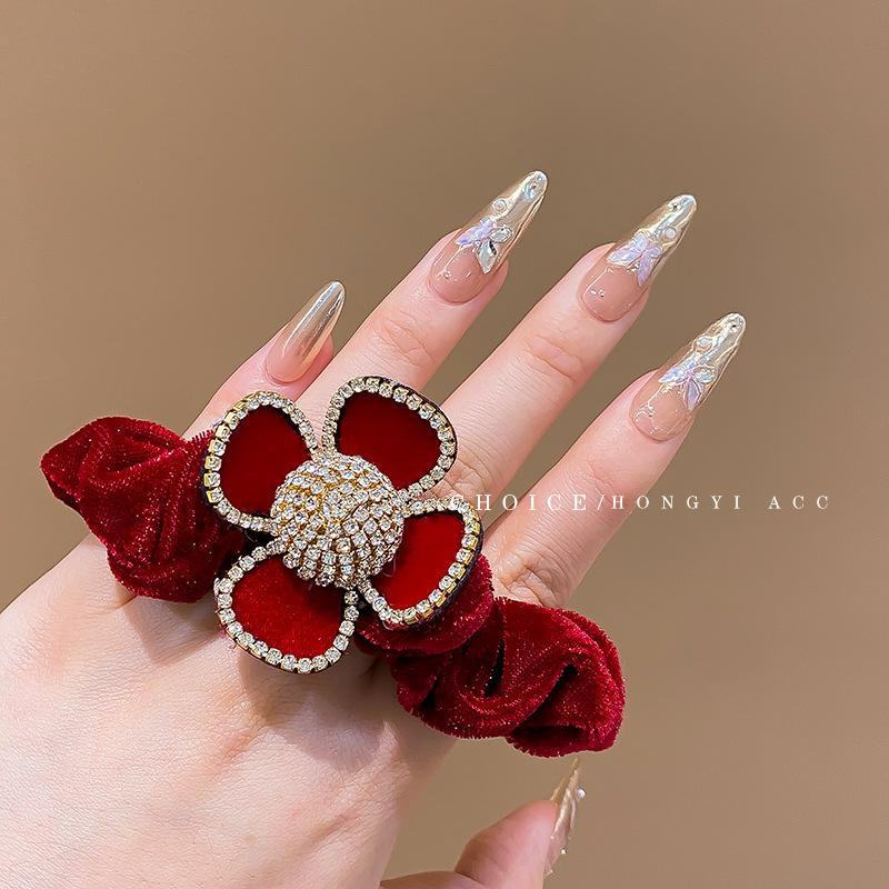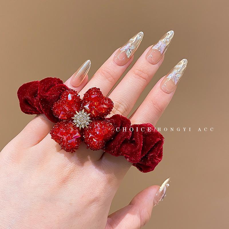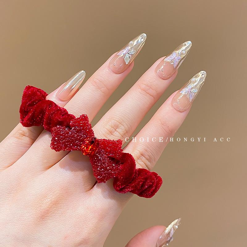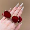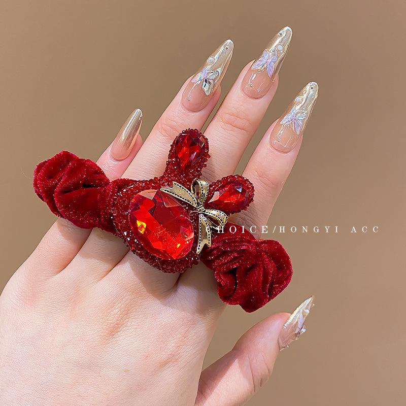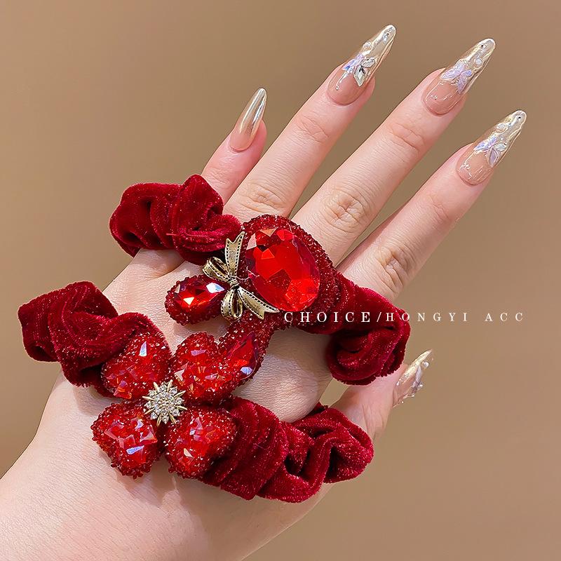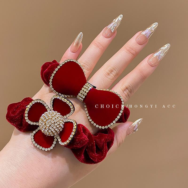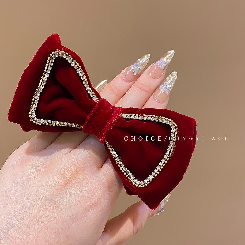 Diadema Infantil Terciopelo Rojo Banda para el Cabello Niña Princesa Banda Elástica para el Cabello Lazo de Pedrería Diadema Tocado para Niña