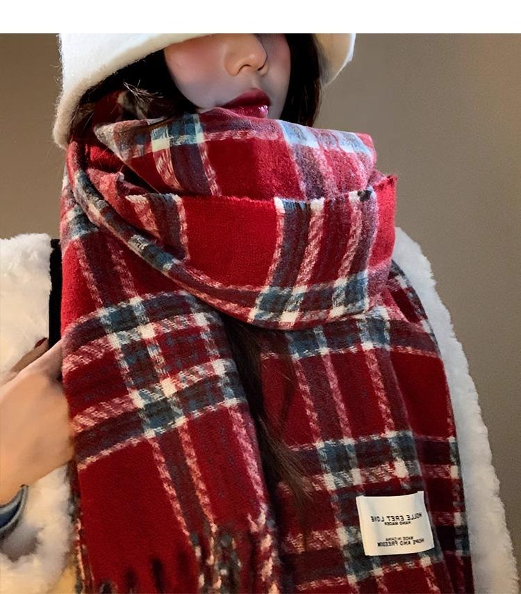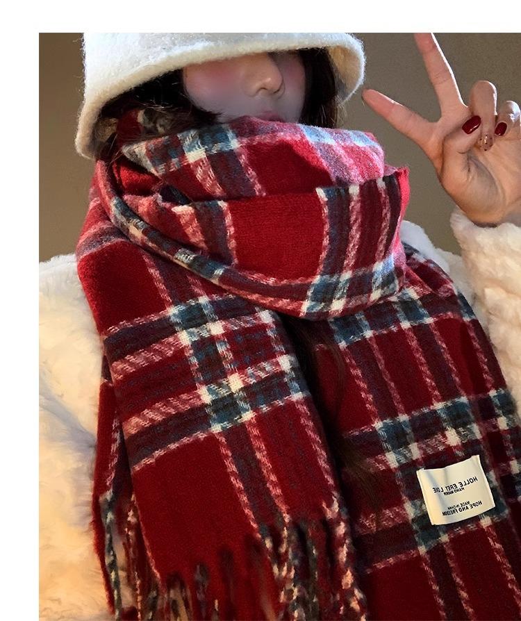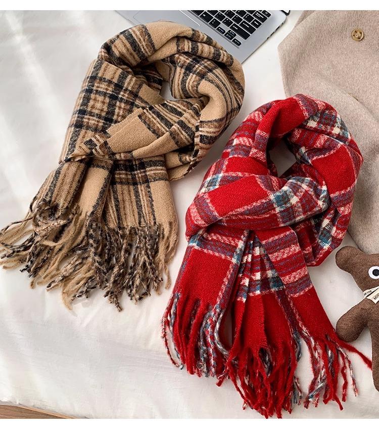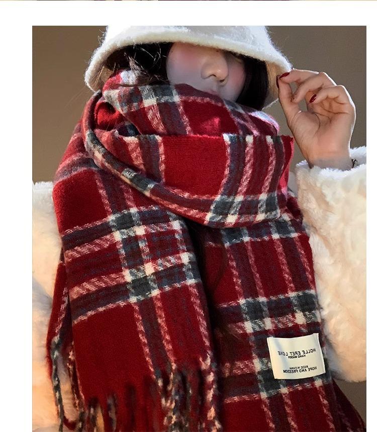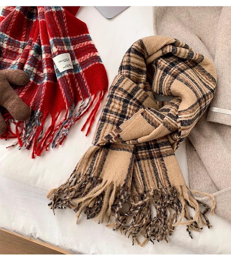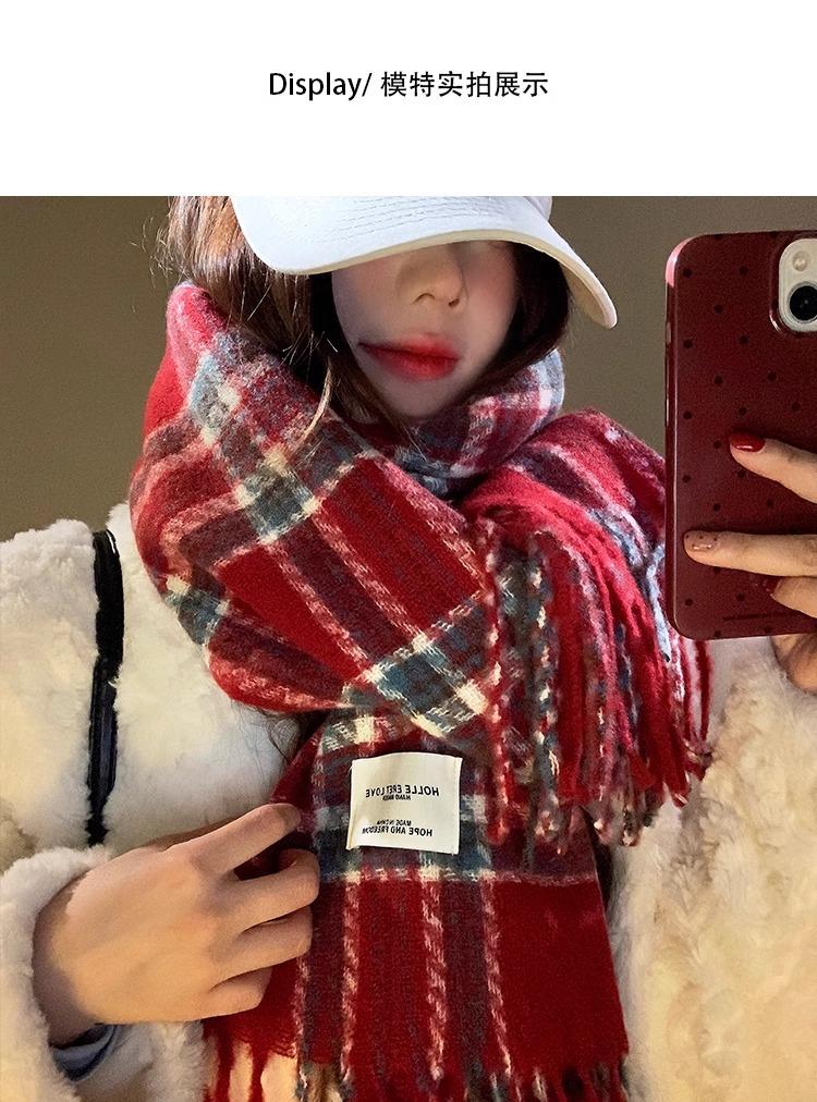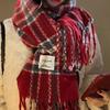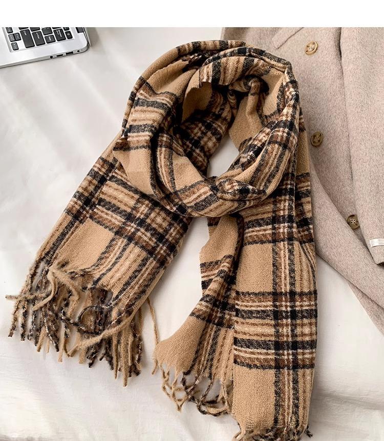 Bufanda de Otoño e Invierno de Alta Gama con Sensación Ins a Cuadros para Mujer, Estilo Coreano, Nueva Moda, Gruesa y Cálida, Bufanda Versátil para Estudiantes