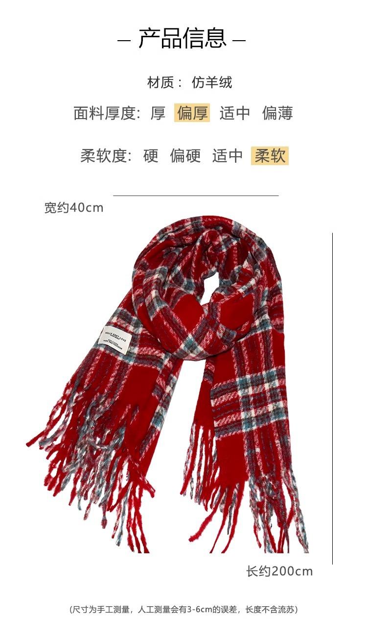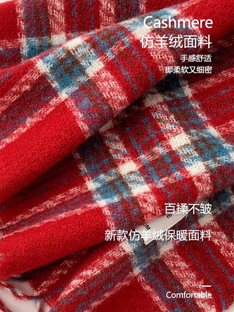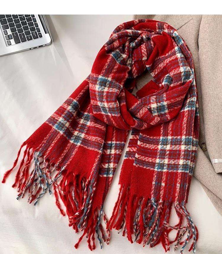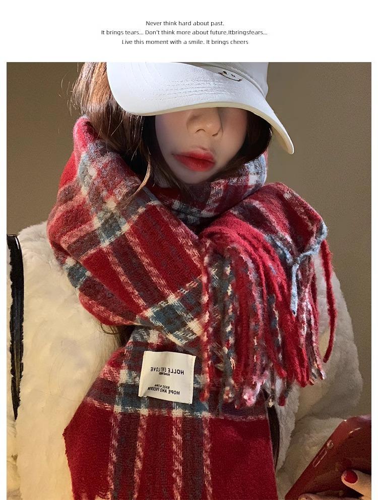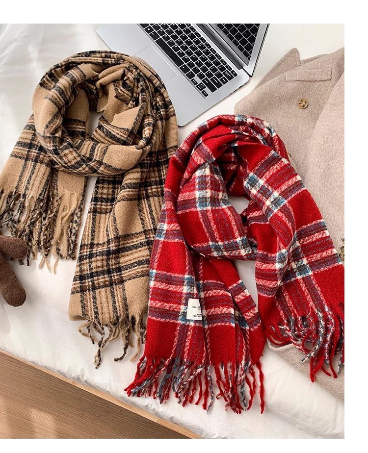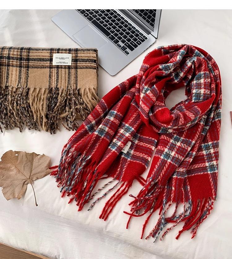 Bufanda de Otoño e Invierno de Alta Gama con Sensación Ins a Cuadros para Mujer, Estilo Coreano, Nueva Moda, Gruesa y Cálida, Bufanda Versátil para Estudiantes
