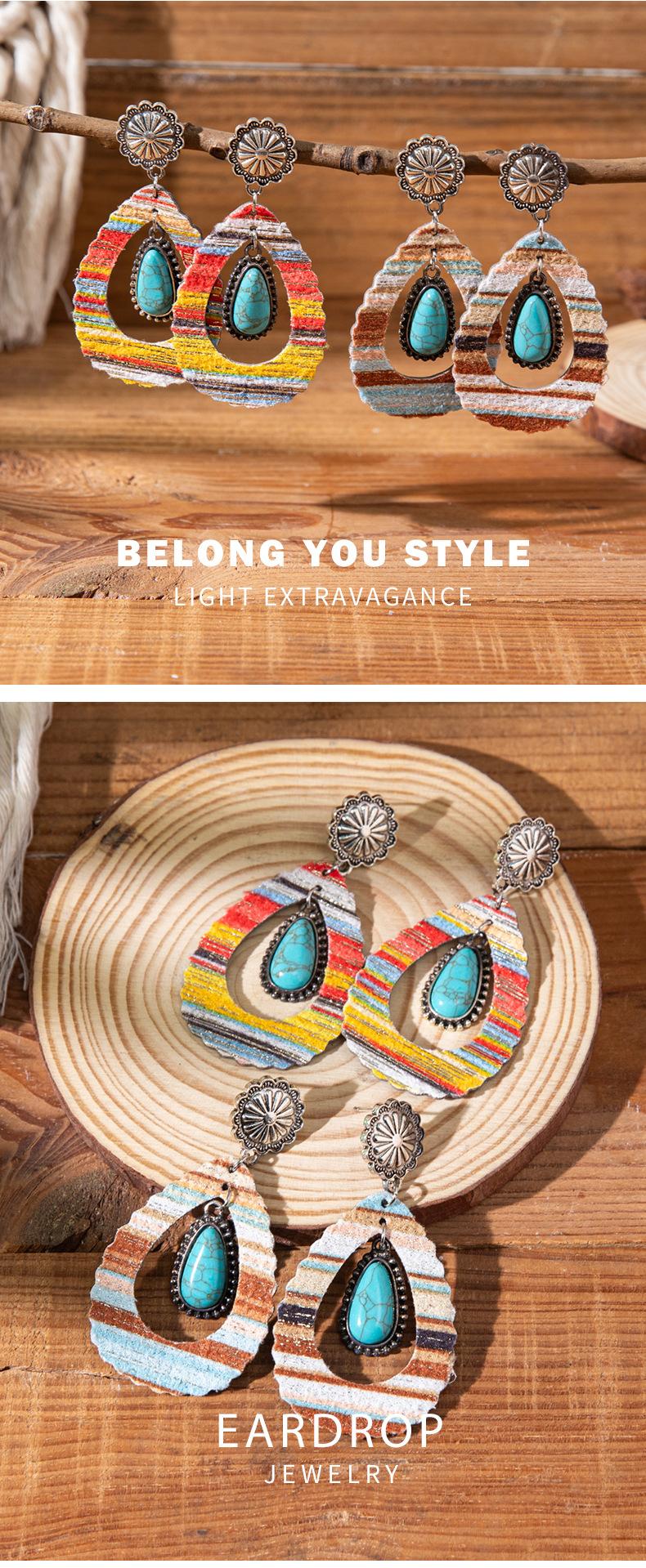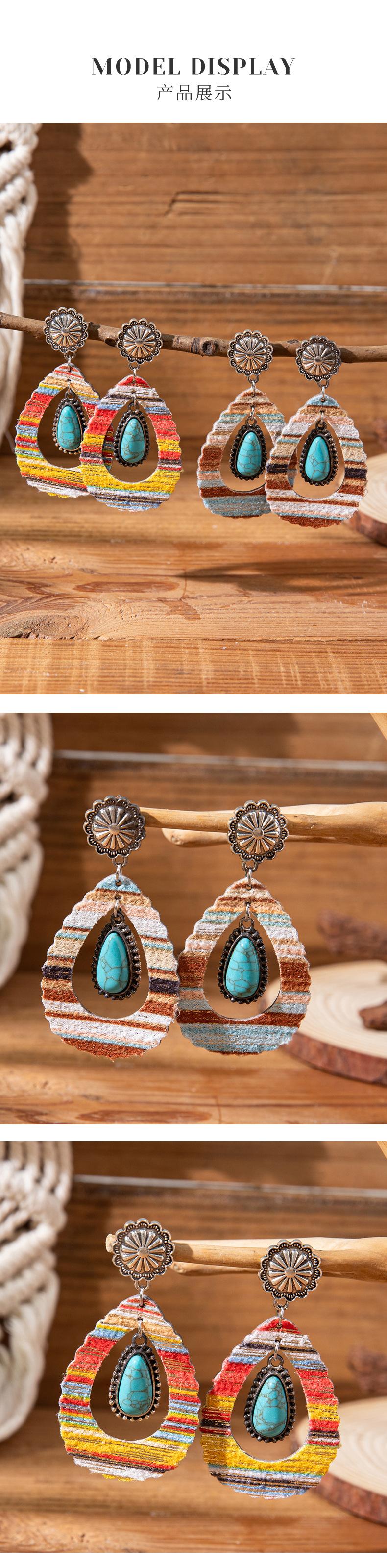 Pendientes estilo occidental vintage de color turquesa para mujer, estilo bohemio, pendientes colgantes, suministro transfronterizo al por mayor