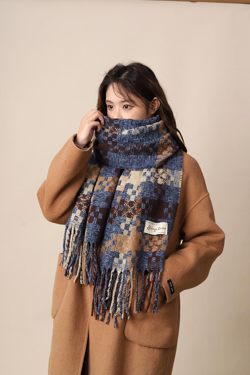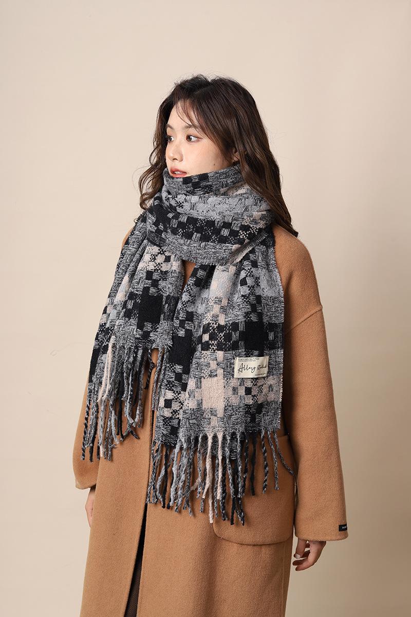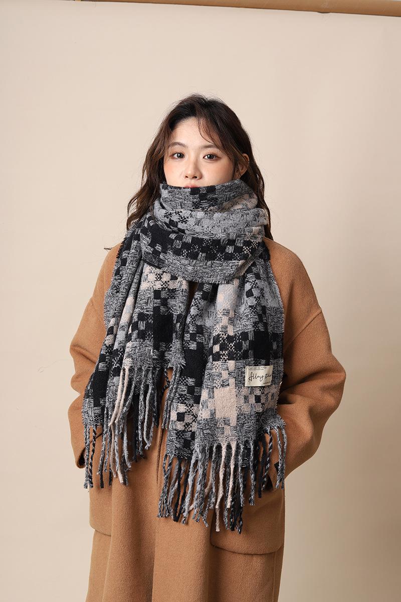 Compra Bufanda cálida con borlas tejidas a cuadros con atmósfera otoñal e invernal para hombres y mujeres, chal de cuello largo grueso extragrande y cálido. al por mayor en Joom.pro