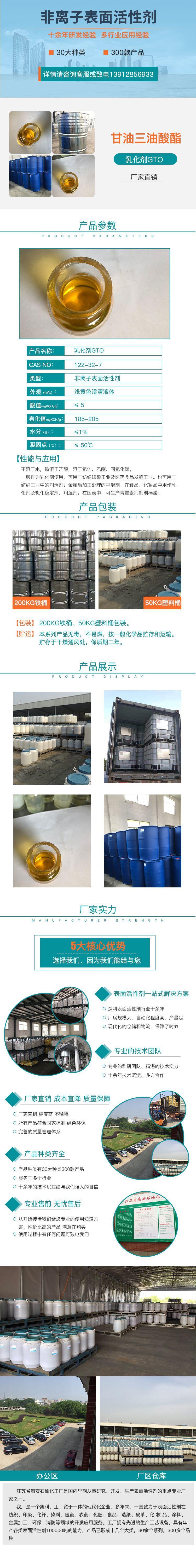 1Este producto es fácilmente soluble en aceite y solventes polares generales, se dispersa en agua y es un buen emulsionante lipofílico.,en invierno(0℃) no se deslaminará ni se asentará.