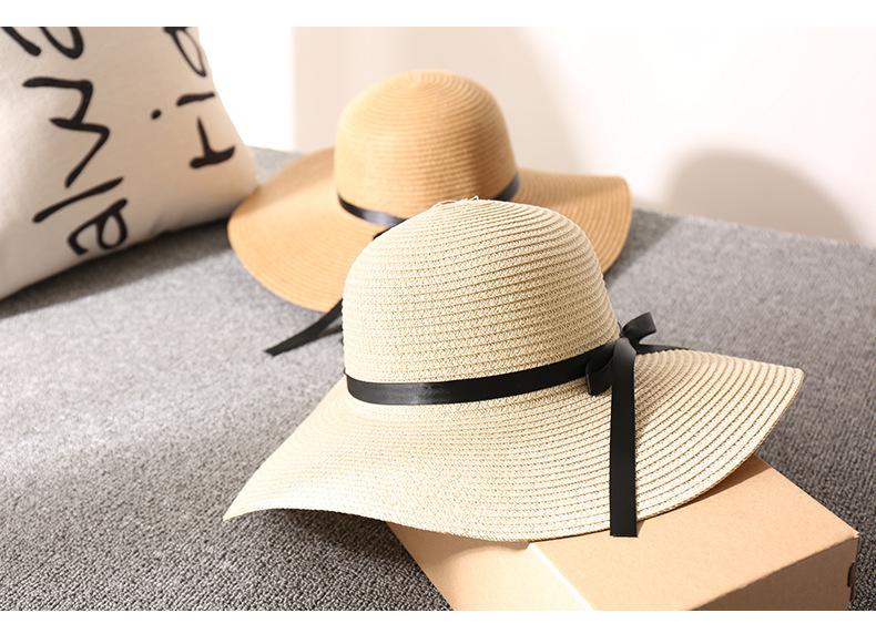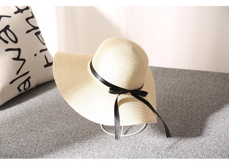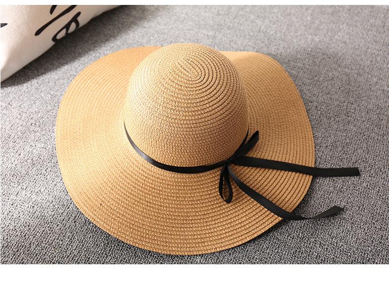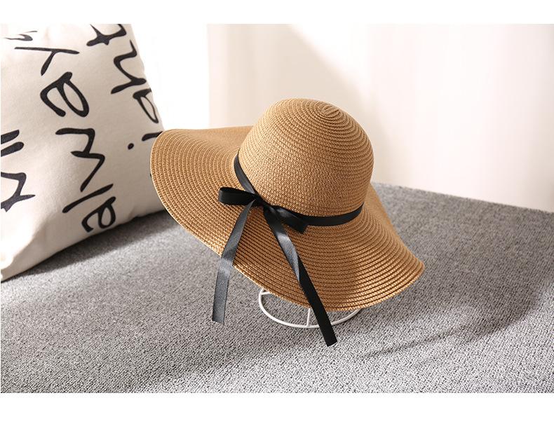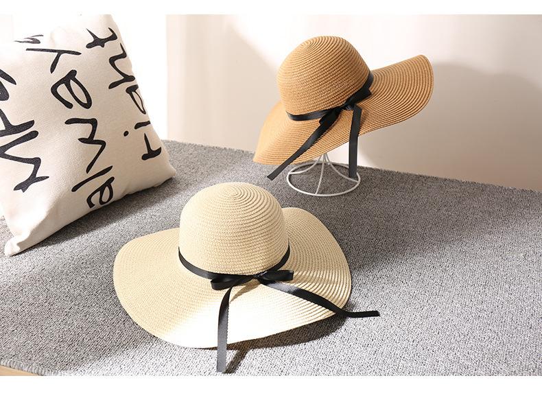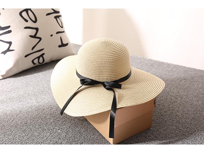 Sombrero de Paja Sombrero de Vacaciones para Mujer Sombrero de Paja de Ala Ancha para la Costa Sombrero de Playa de Verano para Mujer Sombrero para el Sol Plegable Pequeño y Fresco
