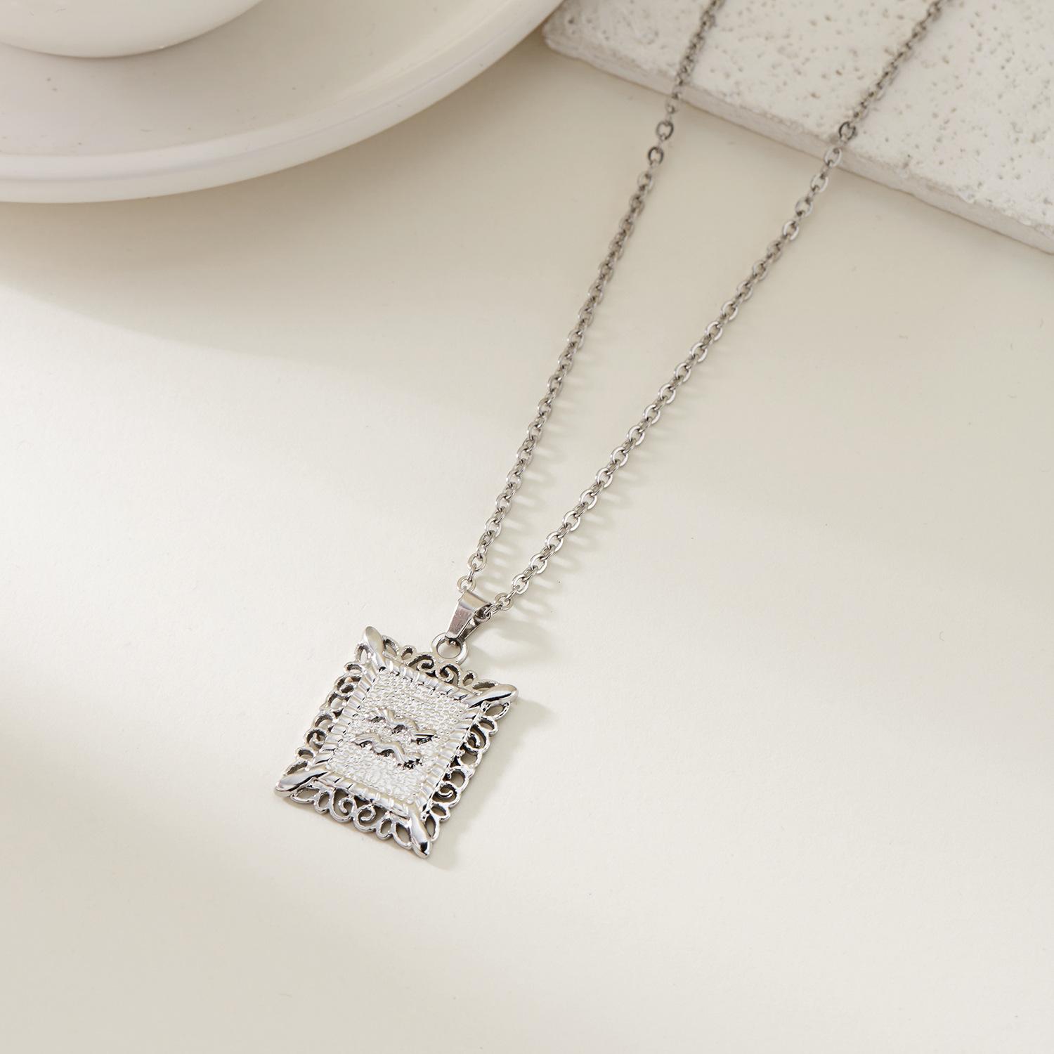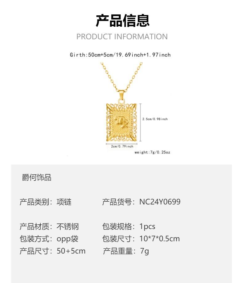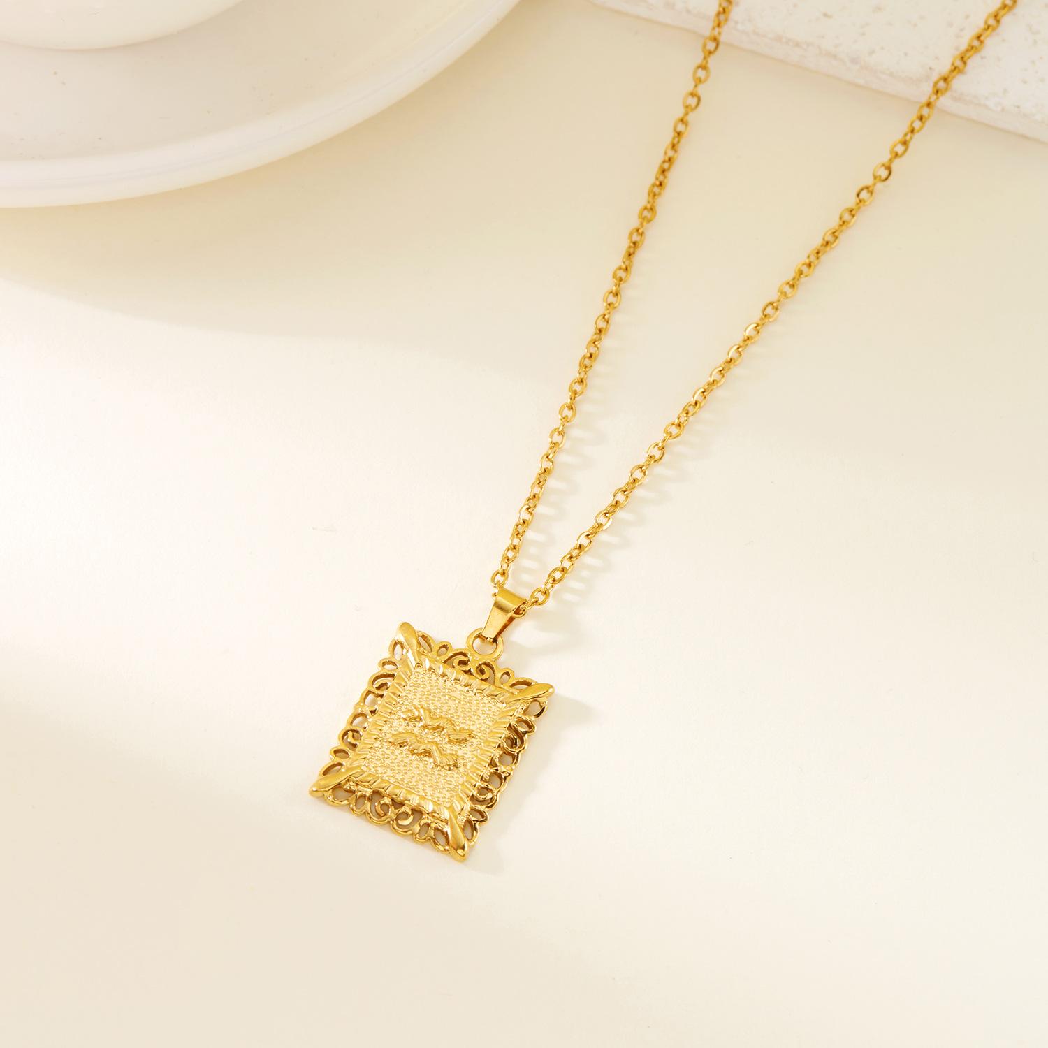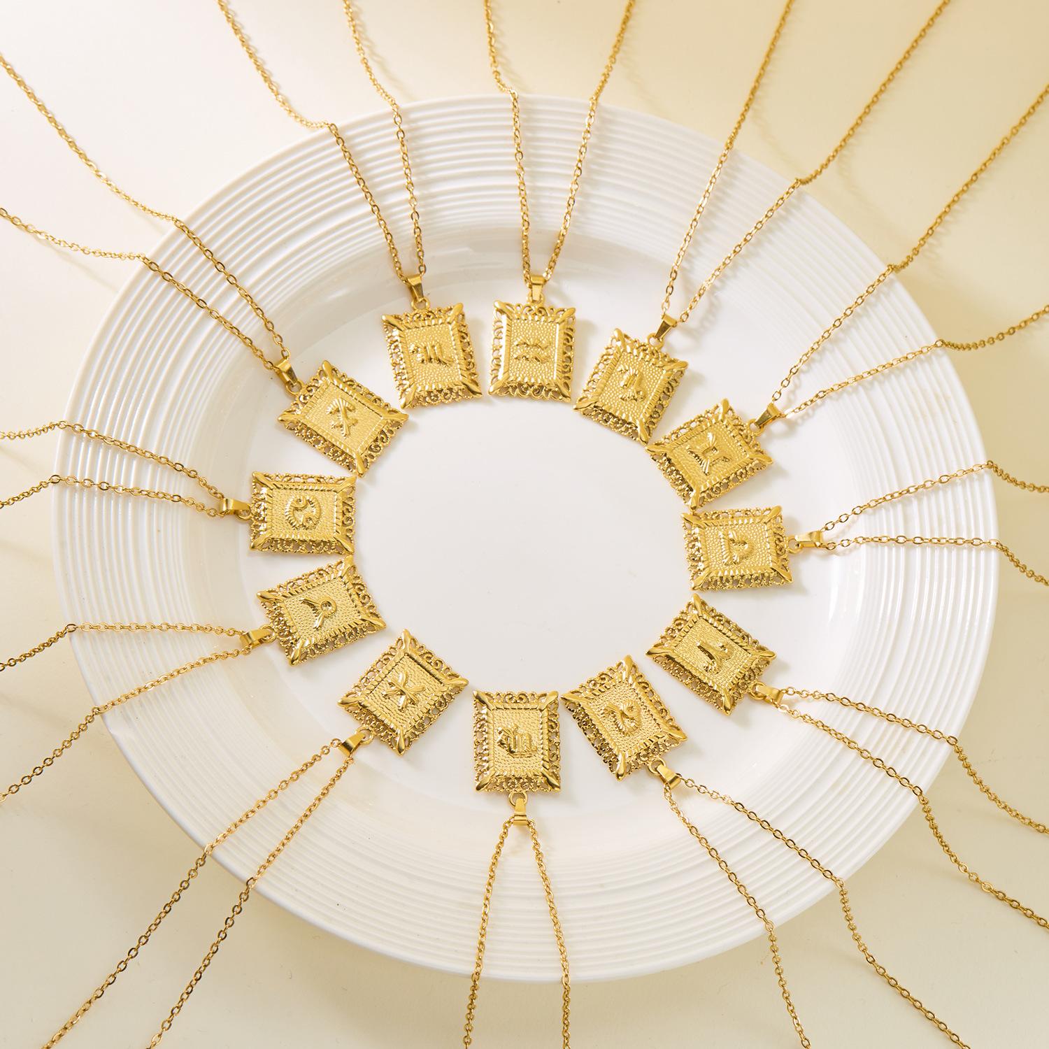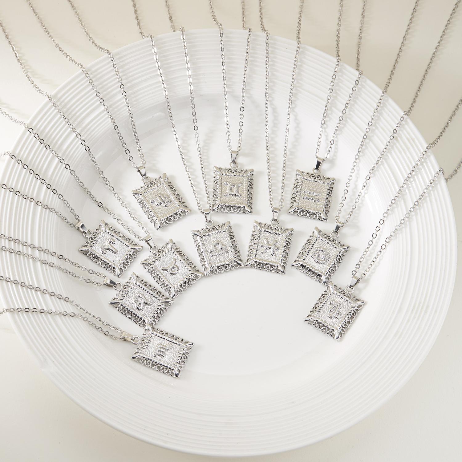 Collar de acero inoxidable con doce constelaciones, accesorios europeos y americanos transfronterizos, no se decolora, colgante con símbolo de constelación hueca cuadrada.